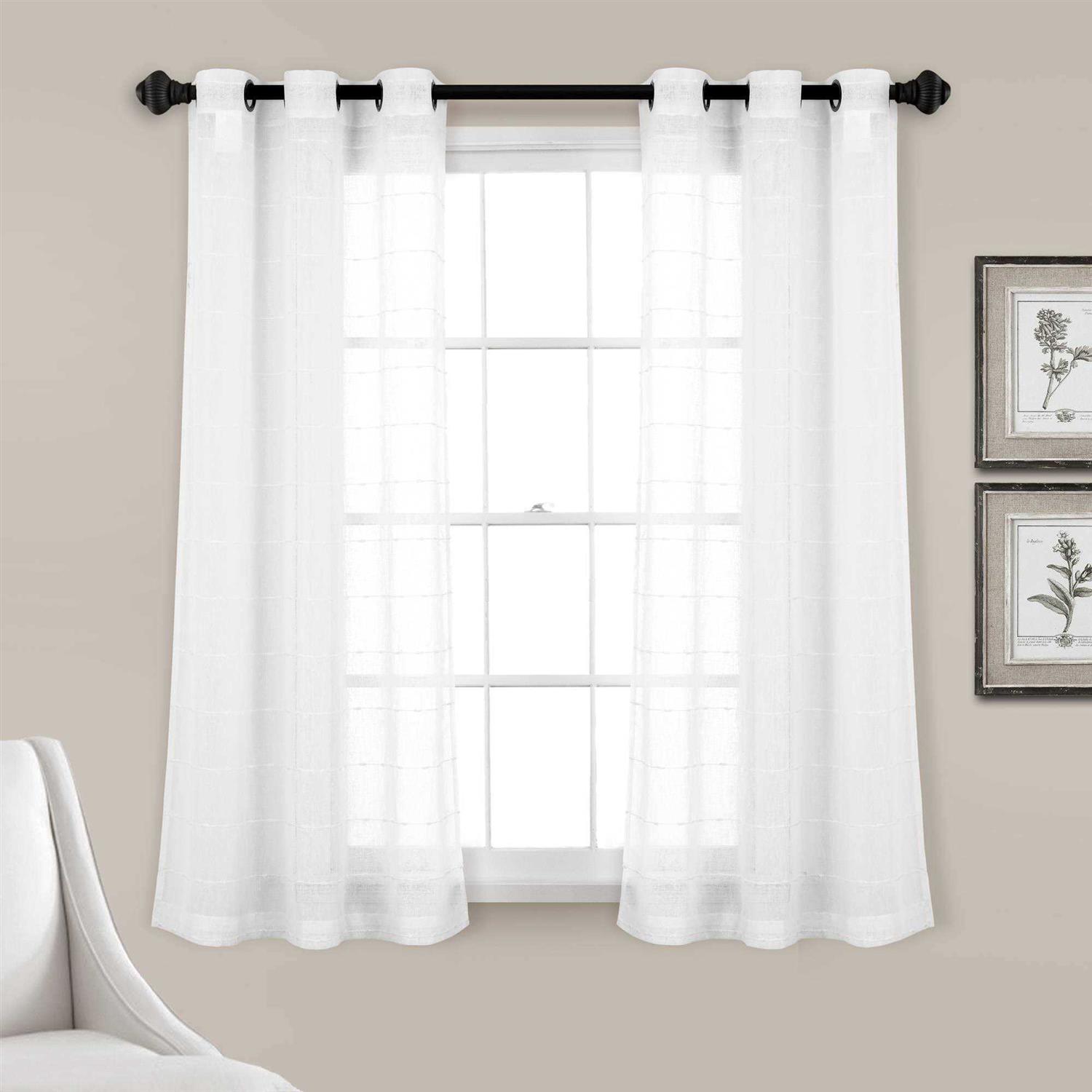 Lush Decor Farmhouse Textured Grommet Sheer Window Curtain Panels Bleach White 38X63 Set