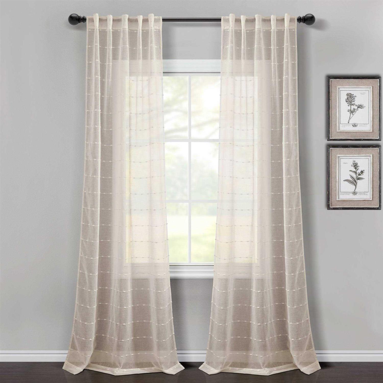 Lush Decor Farmhouse Textured Grommet Sheer Window Curtain Set