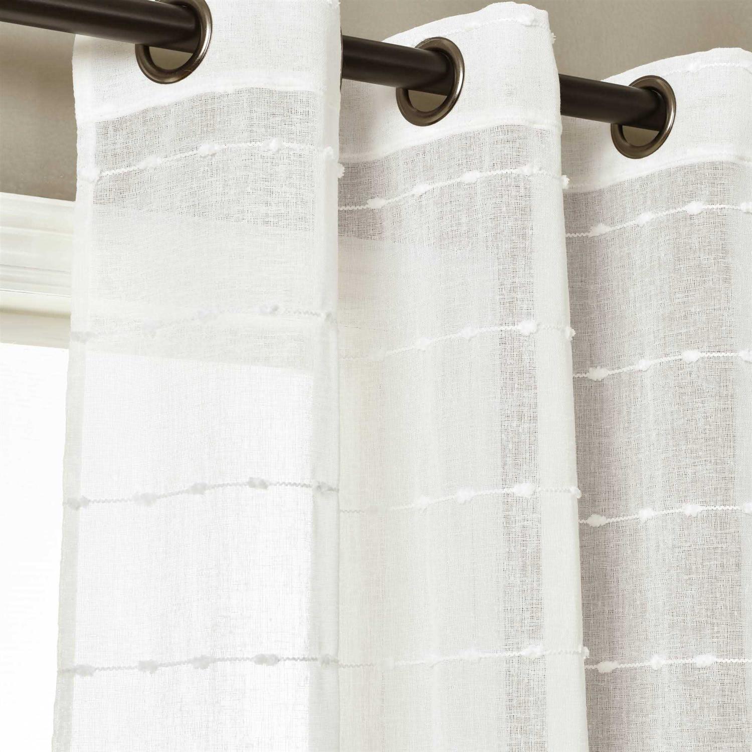 Soft and easy washable polyester Curtain – Window Panels Set – drapes to decor You will love this new sheer curtain set which will let plenty of light into your home while still providing privacy from outsiders. The dotted stripe pattern adds that little something extra to your space. Hang with metal grommets. Sold by the pair.