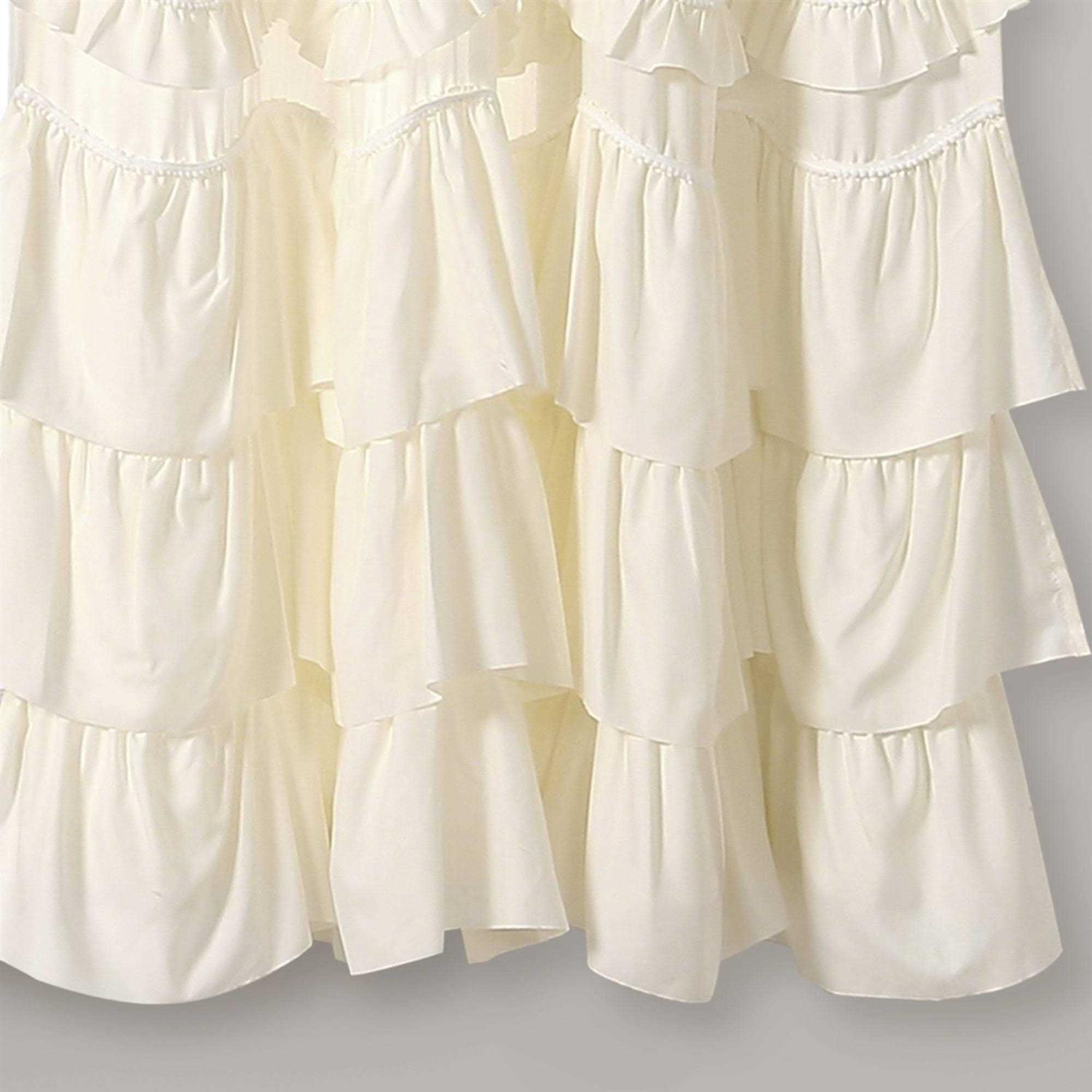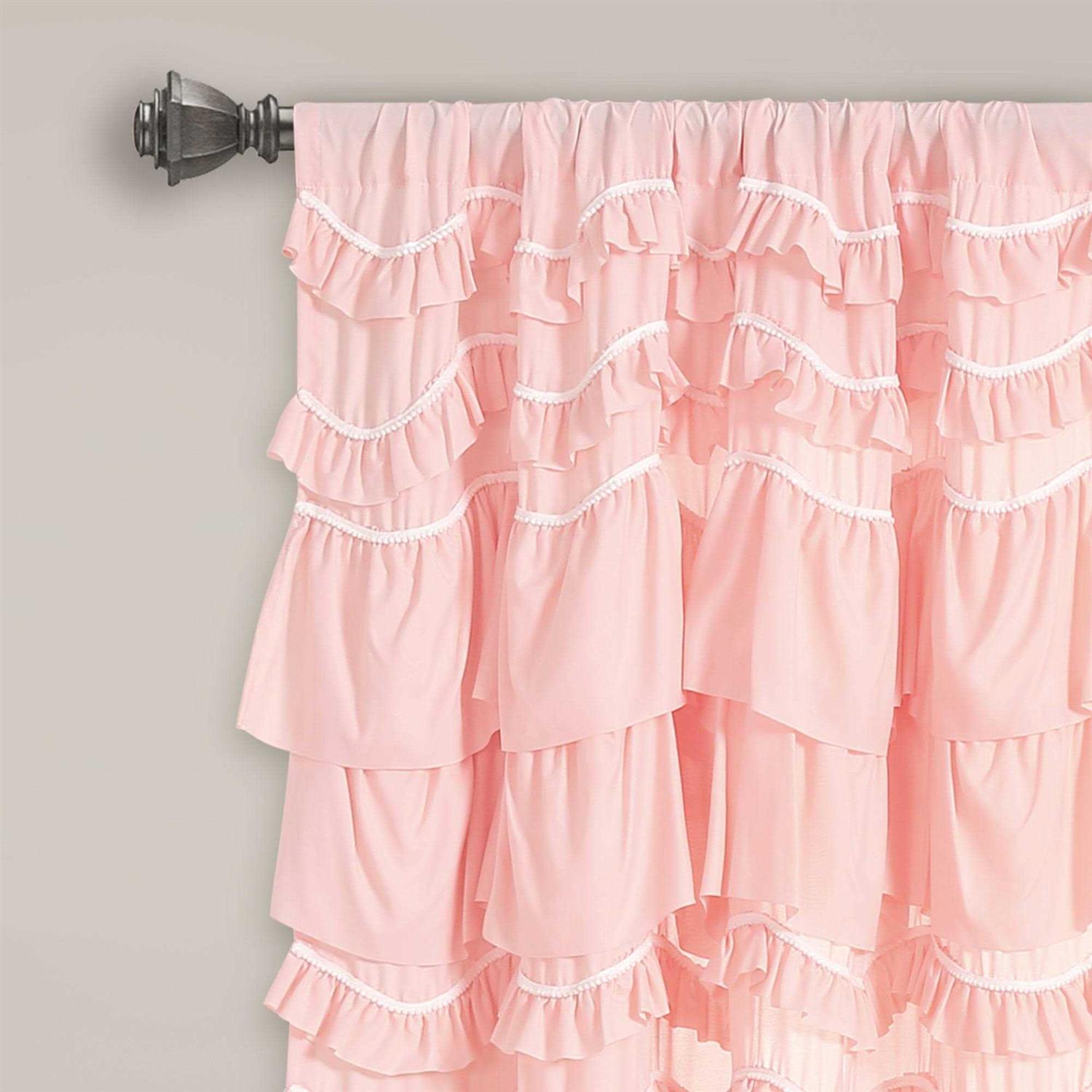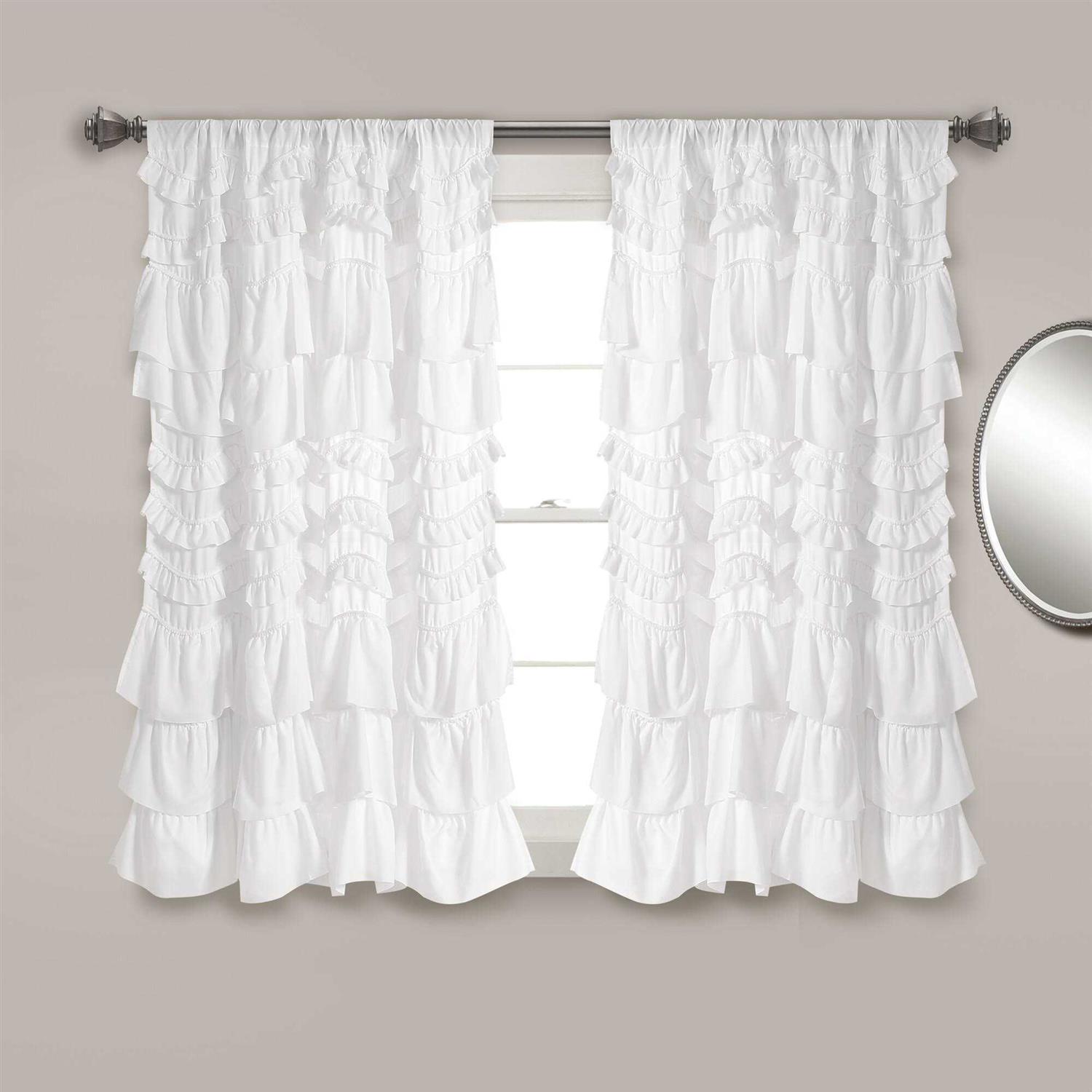 This window curtain set is the complete package: class, style, fun and beauty all in one. The layered ruffles in this design add dimension and texture to your space giving diversity to your decor. This curtain is sold by the panel. A great home decor tip you can use to shake things in your space is to add texture. This lovely curtain will do just that! These delicately layered ruffles are arranged in a unique pattern giving your bedroom an elegant touch. This curtain panel would be a wonderful addition to a nursery. This window curtain measures 52 inches across and hangs 63 inches down and is sold by the panel. It can easily be assembled by sliding a curtain rod through the three inch rod pocket. Please refer to label for full care instructions.