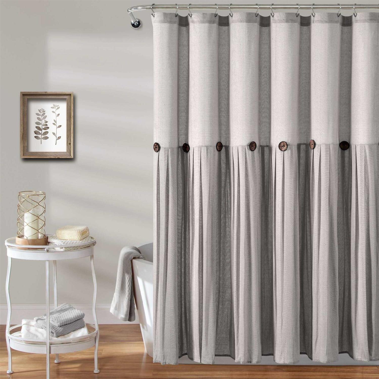 Add a fun energy to your bathroom with this delightful shower curtain. The button embellishments add a unique touch to the look of your space. The pleats give the shower curtain a more textured look. This is ideal for your guest bath or teens bathroom. Cotton Lush D? cor Linen Button is the ideal bathroom shower curtain for your shabby chic, modern or farmhouse decor. Soft, linen and cotton blend fabric curtain with a simple, minimalist or country style design for your bathroom. Measures 72 x 72 inches with button holes at top allow for easy installation with any ring or hook. Safe to machine wash cold in a mesh laundry bag and tumble dry low. Follow care instructions on label.
