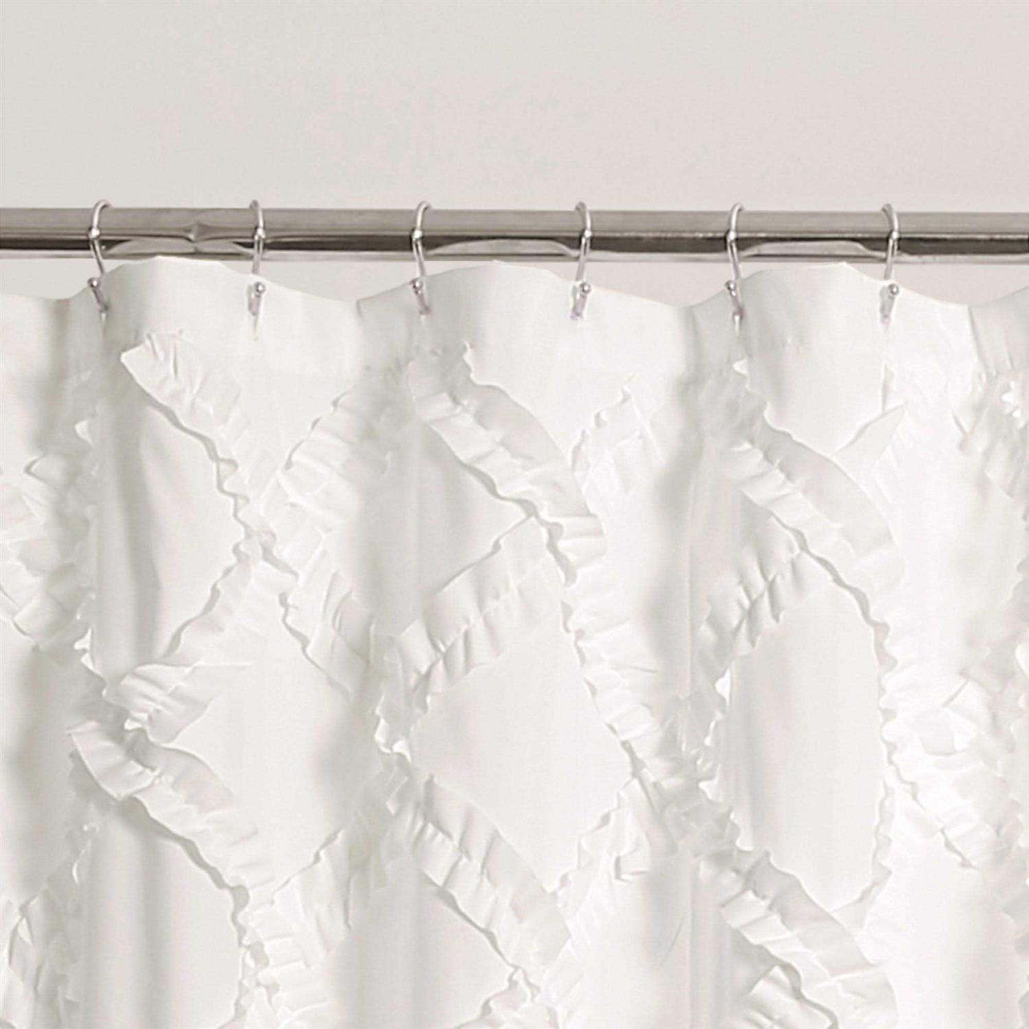 - Lush Décor Ruffle Diamond shower curtain is the ideal piece for your farmhouse style, shabby chic or vintage bathroom decor.