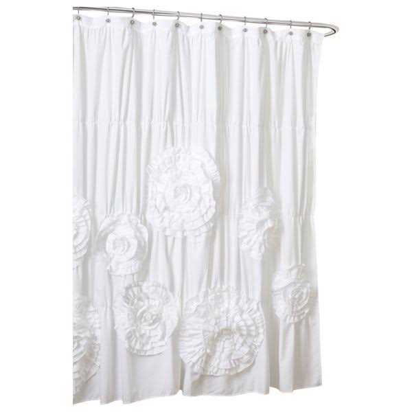 - Elegant, handcrafted ruched flowers give you a charming and romantic bathroom shower curtain.