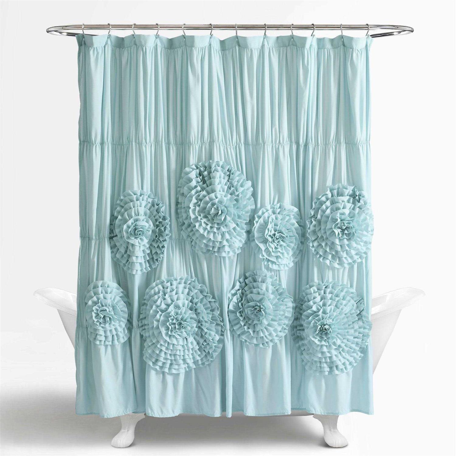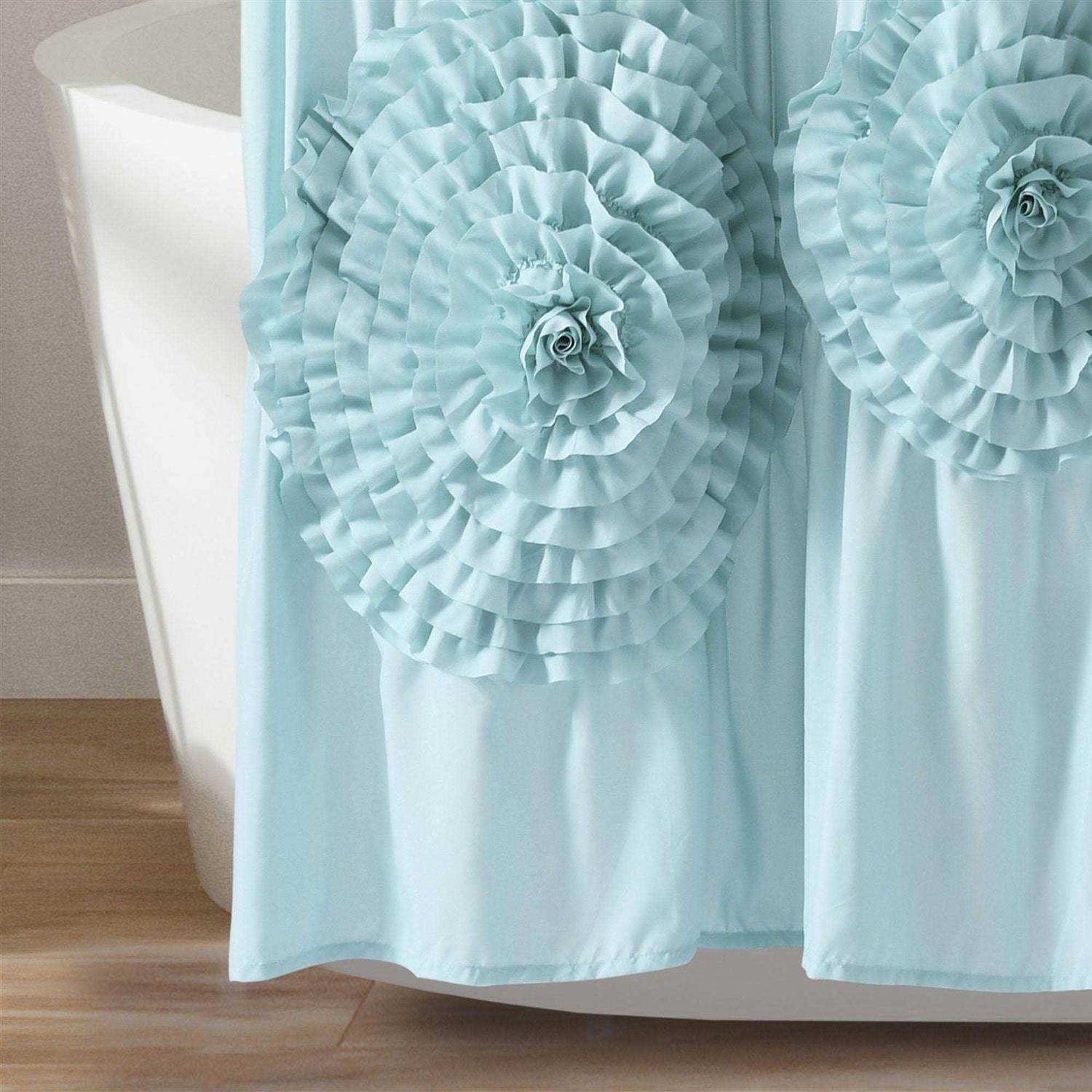 - Elegant, handcrafted ruched flowers give you a charming and romantic bathroom shower curtain.