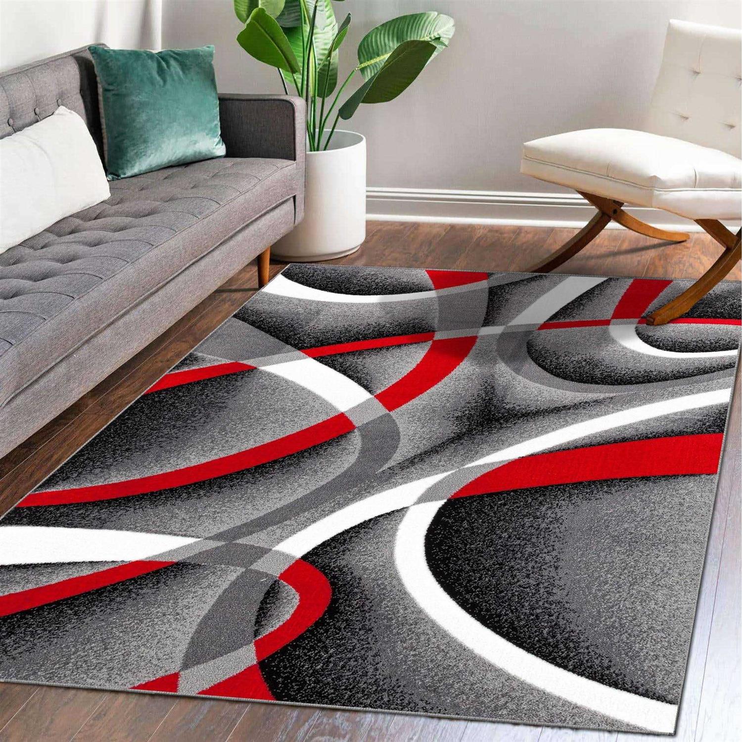 Luxe Weavers Modern Abstract Area Rug has bold, circular designs on a transitional area rug. The colorful hues and abstract geometric shapes complement modern home dcor and living rooms. Make hardwood floors a delight to walk on with a contemporary area rug with medium pile and soft fibers under your feet. Constructed from 100% polypropylene and designed by Turkish artisans. This abstract accent carpet gives a fresh new look to living rooms, dining rooms and bedrooms. Its anti-dust properties make it easy to clean and maintain. Vacuum with a no-beater bar or spot-clean with a mild carpet cleaner to keep it in pristine condition.