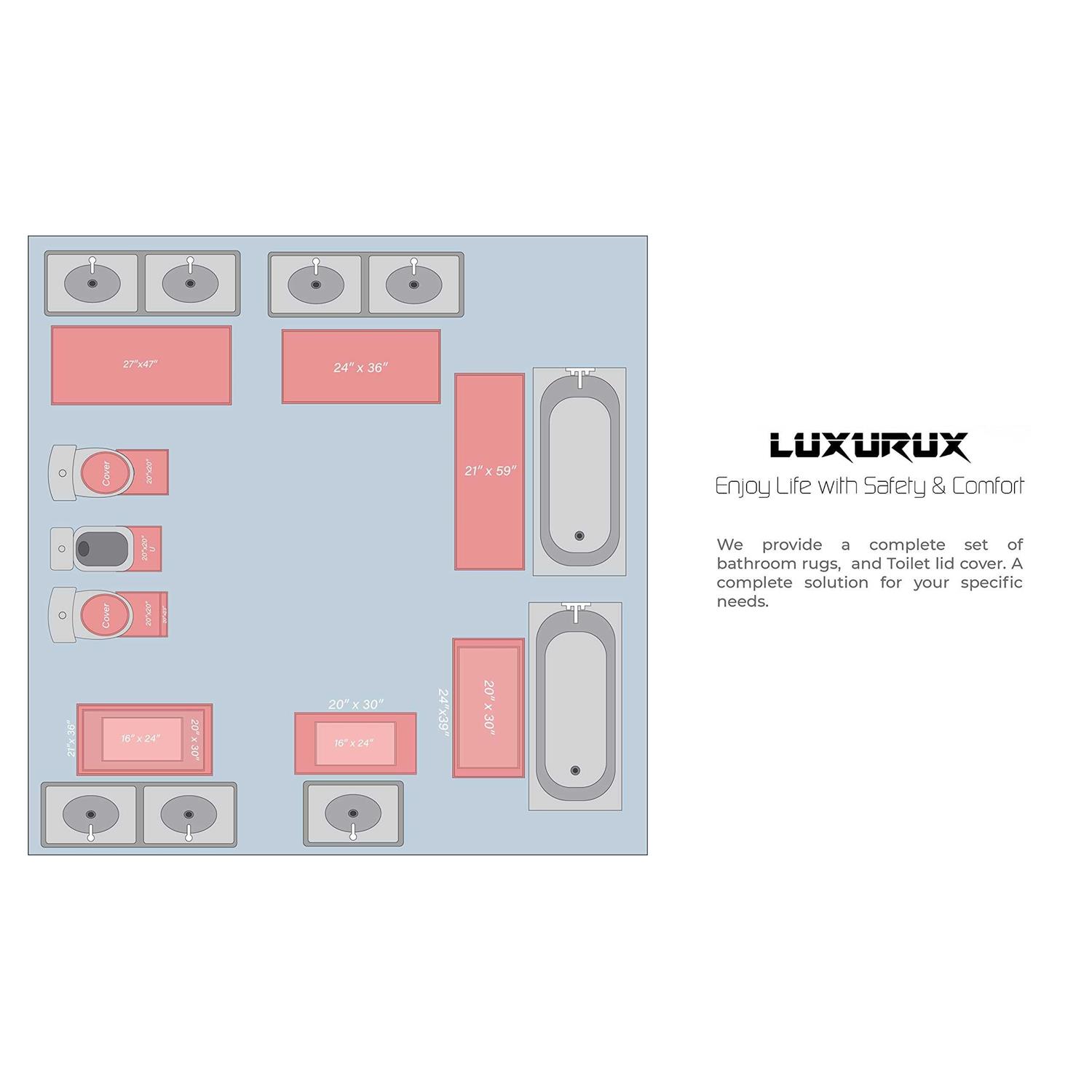 Our bath mat offers a rare combination of comfort and luxury; it is super soft, soaks up moisture, and designed to last for years through heavy use and machine washingYour bath mat is the first thing your body touches after leaving the shower or bath, so its worth treating your feet to one you really like. LuxUruxs lush bath rug set covers all the bases with its soft, quick-drying material and anti-skid layer. Place them outside of your bath tub or shower to provide a soft, water-absorbent solution or in front of your vanity to give bare feet a cushy feel. Microfiber is renowned for its outstanding absorbing abilities and therefor our mat is perfect for bathrooms with heavy traffic because it will dry quickly. The ultra-soft bathmat has more than 90,000 fibers per square inch, to absorb water quicker and better. These rugs are available in 4 different colors to coordinate with any bathroom. Designed to last for years, the rugs wont shrink or turn rough after being washed. It wont fade with continue use. making it a safe choice for kids, toddlers and adults.With so many benefits, its a great additional to any bathroom!