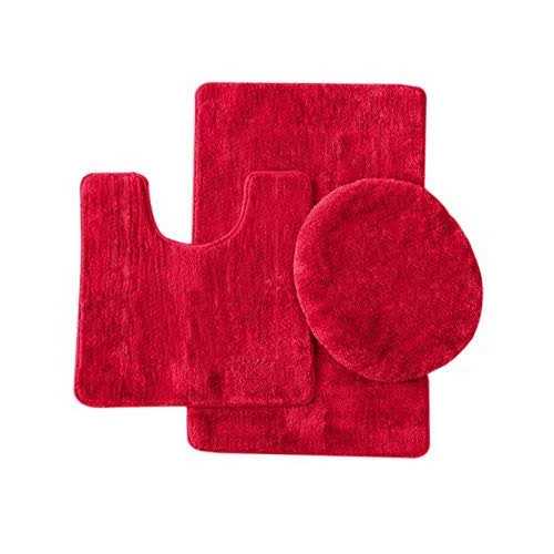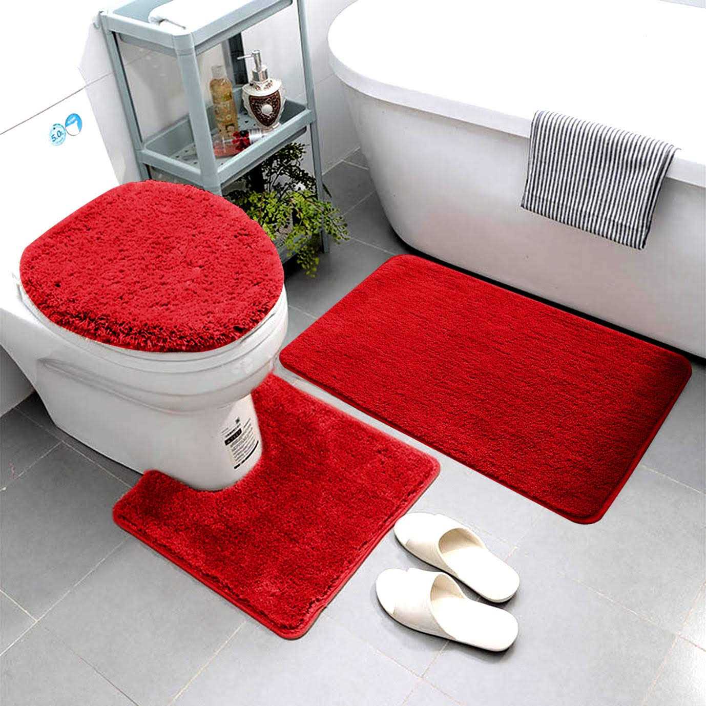 Luxury Home Collection 3 Piece Soft Microfiber Bathroom Rug Set Non-Slip Bath Rug with Rubber Backing, Contour Mat, and Toilet Lid Cover (Red)