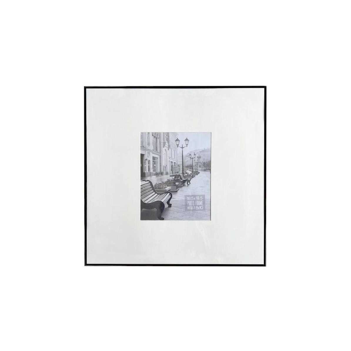 A chic frame for your cherished memories. Proudly showcase your favorite pictures with this contemporary black frame. Its sleek design and metal construction create a modern, versatile look that complements any decor. With its included matting, this frame effortlessly adds depth and sophistication to your 8x10in. photos. Whether it’s a captured milestone or a treasured moment, this frame beautifully preserves and highlights your memories. Contemporary thin black frame. Includes matting for an elevated presentation. Perfect for displaying 8x10in. photos. Made of metal and glass. Measures 19.0″ L x 19.0″ H x 0.8″ W.