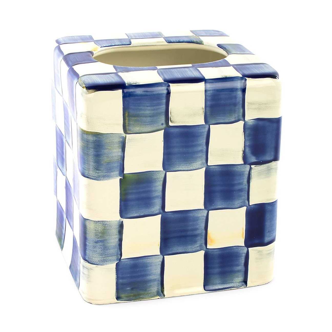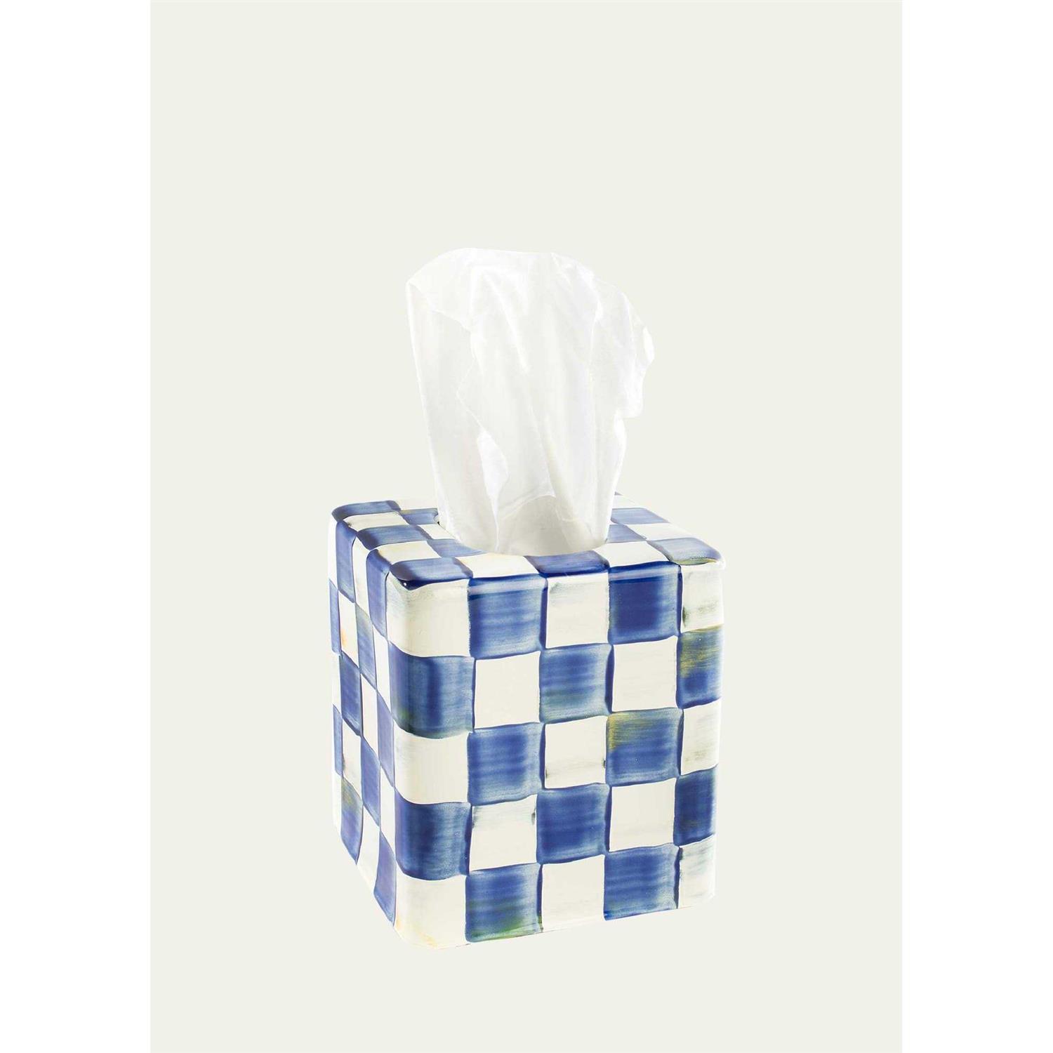 Be prepared for every sneeze or sniffle! Keep a Royal Check enamel boutique tissue box cover within reach in the powder room, bedroom, and guest room. The simple elegance of our popular blue checked pattern adds style to a household staple.
