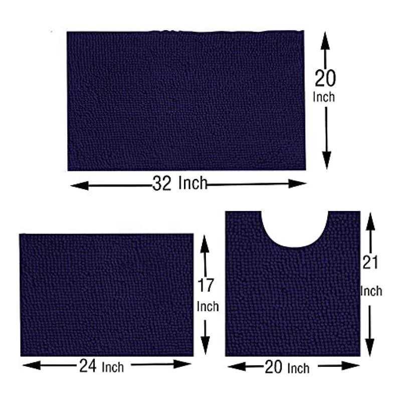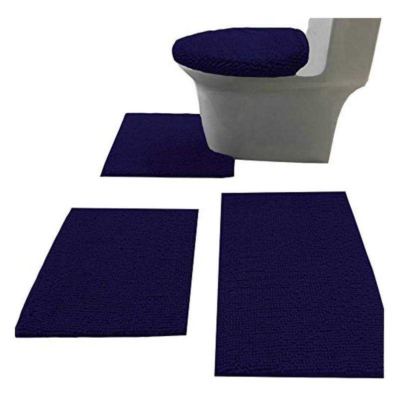 Madeals Bath Rug Set Combo 4 Piece with Toilet Lid Cover, Soft Shaggy Bath Rug Set 3 Piece and U-Shaped Toilet Floor Rug Navy Blue