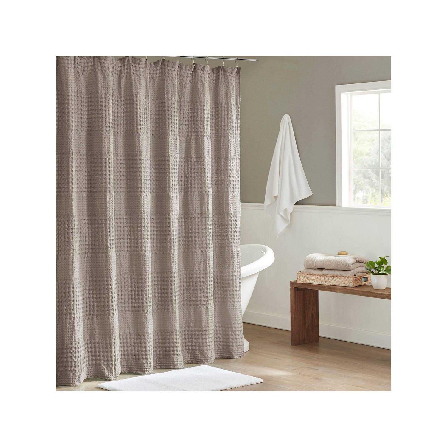 Madison Park- Arlo Super Waffle Textured Solid Shower Curtain Taupe