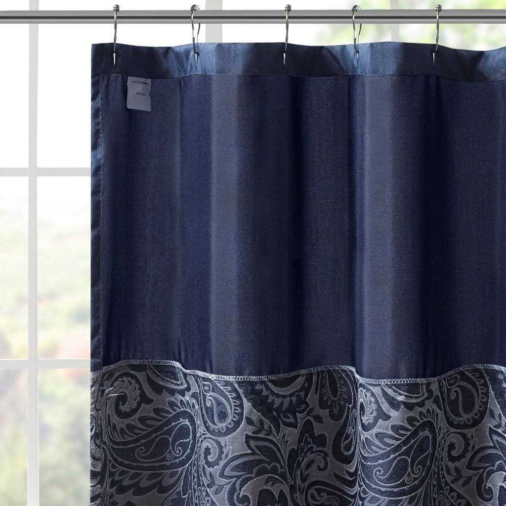 The Aubrey Jacquard Shower Curtain from Madison Park brings sophisticated style into your bathroom. This curtain features a jacquard print with a large stripe across the top. Made from 100% polyester, this curtain is machine washable and easy to care for.
