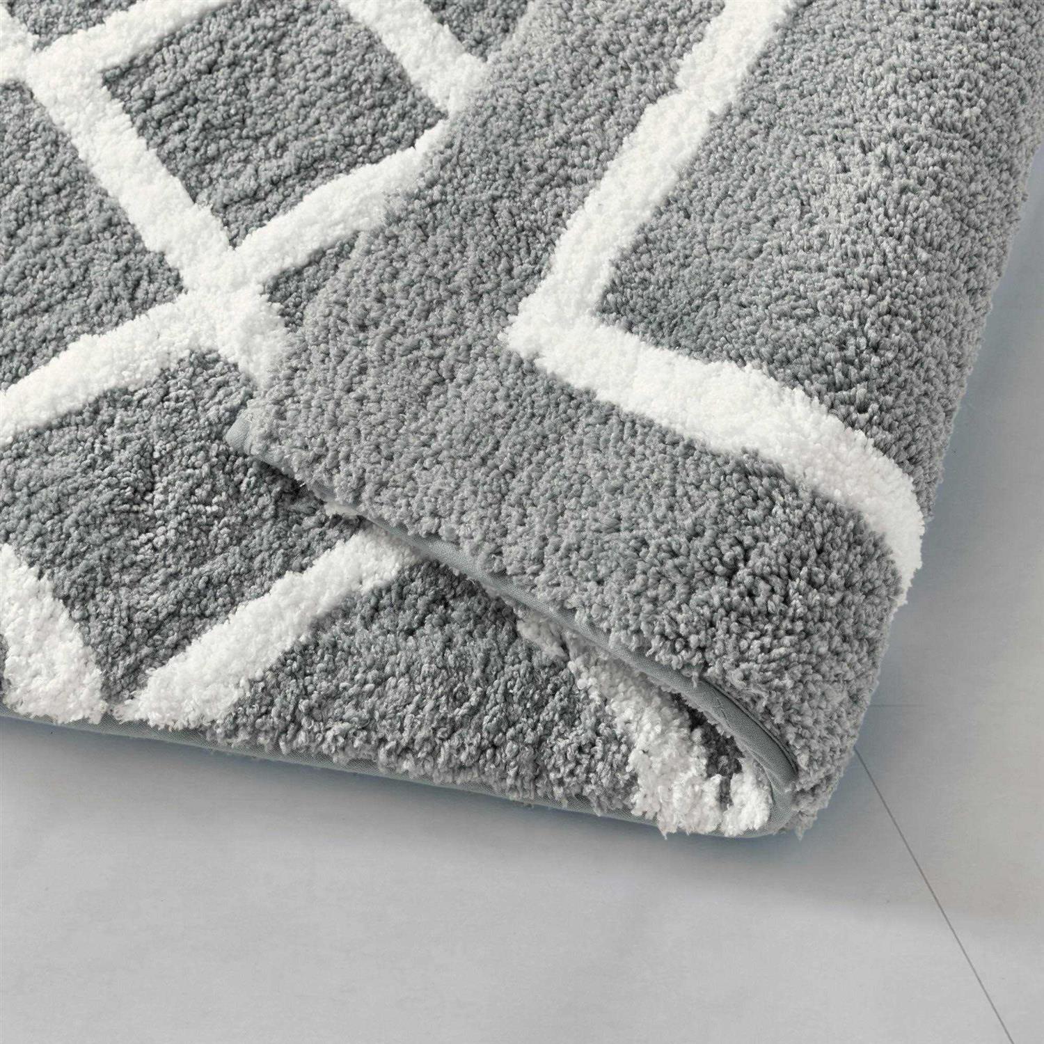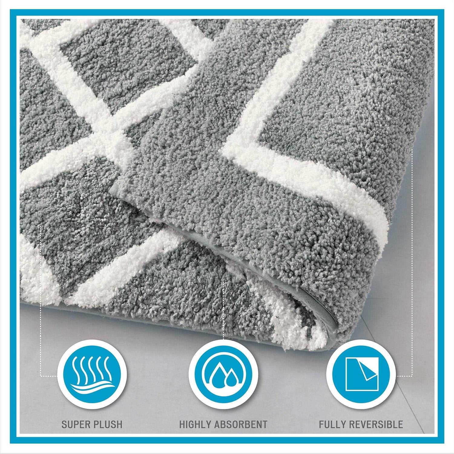 The Arlo Reversible Tufted Microfiber Bath Rug offers a modern update to your bathroom. Fully reversible this high pile bath rug features a geo fretwork design that flips to a classic border pattern; a great value of two pile high bath rugs for the price of one. The reversible bath rug is incredibly soft to the touch. Easy to coordinate with your bathroom decor this reversible tufted bath rug comes in two sizes with multiple color options and is machine washable for easy care. A rug pad is highly rmended for safety and to keep rug secured in place.