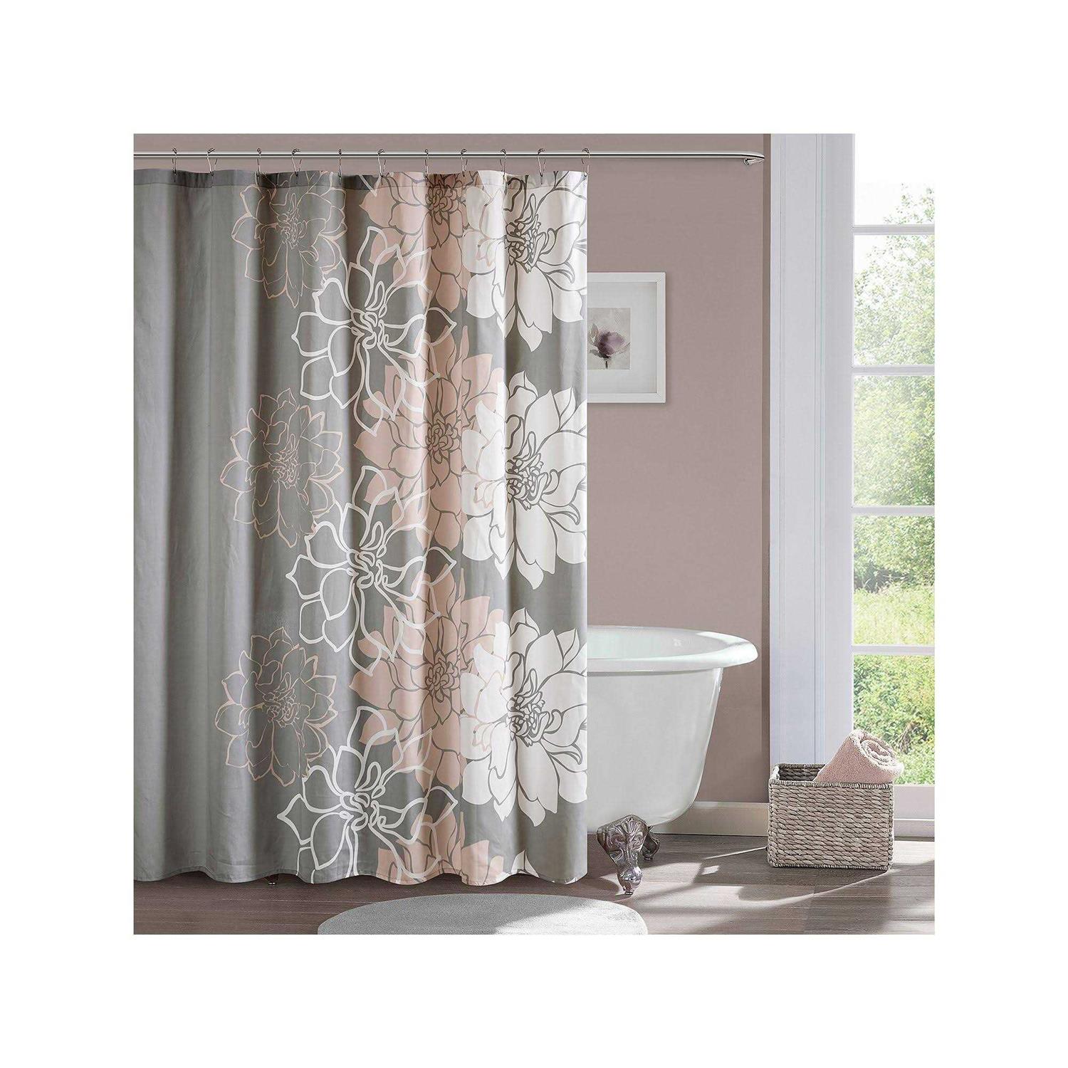 Madison Park Lola 100% Cotton Sateen Floral Printed Shower Curtain Blush 72×72 For a fun splash of color, this Madison Park Lola shower curtain is sure to liven up your bathroom decor. Made from 100% cotton for a natural look and feel, this shower curtain features a large peach and white floral print on a grey ground, creating a nice pop for a fresh and stylish update. Machine washable for easy care and measuring 72×72 inch, each shower curtain is also finished with 12 button holes on top making it easy to assemble hooks and simply hang on rod (hooks and rod not included. To better preserve this shower curtain, a water repellent liner (not included) is highly recommend. Complete the collection with coordinate matching bedding, available and sold separately.