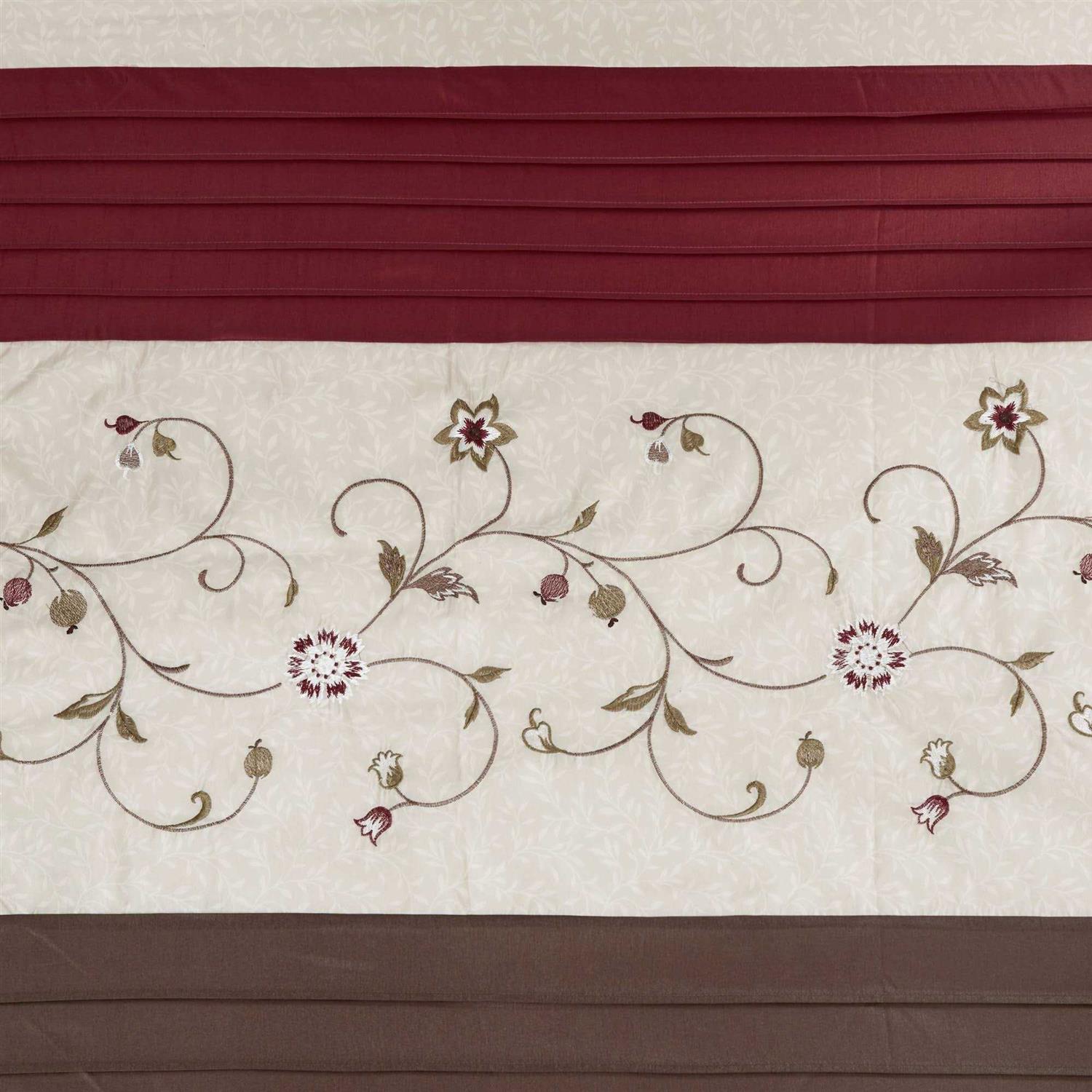 Madison Park Red Serene Faux Silk Embroidered Floral Shower Curtain