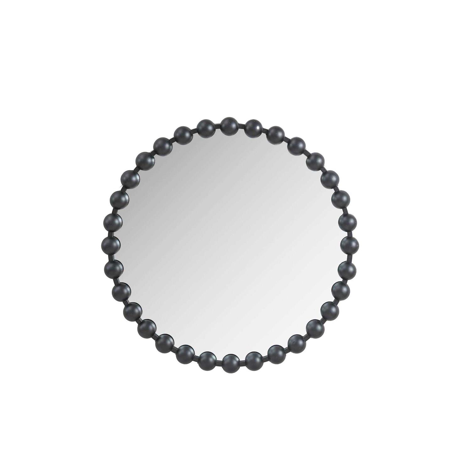 Reimagine your space with our Madison Park Signature Marlowe Decor Mirror. This round mirror features a stylized spherical iron frame finished with an antique metallic silver foil, creating a rich sheen and light speckled pattern effect. The keyhole hook fixture on the back of the mirror allows for effortless hanging on your wall. Incorporate this wall decor mirror into any room or space, for the perfect combination of modern glam and flair. Wipe clean with damp cloth and handle with care. FeaturesSingle piece item, available in two sizes Dia 36″ (mirror dia. 33.8″) and Dia 27″ (mirror dia. 24.3″) Wall mirror features large bead detail Metal frame is made from iron metal Mirrored glass on MDF backing Keyhole hook on the reverse for hanging; screw size recommended (9mm in dia x 25mm)Ready to hang with keyhole hanger Indoor use only. Spot clean only Due to lighting and monitor differences, actual colors and finishes may vary slightly from what appears online.