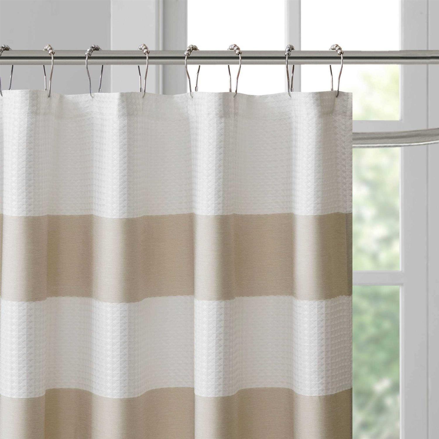 Features. Update your space with the Madison Park Spa Waffle Shower Curtain with 3M Treatment. Several alternative colors pieced with a white waffle weave manipulation makes you feel like you’re in the spa while the 3M water repellent treatment keeps your curtain looking newer longerSpecifications. Color: Taupe. Size: 54 x 78 in.