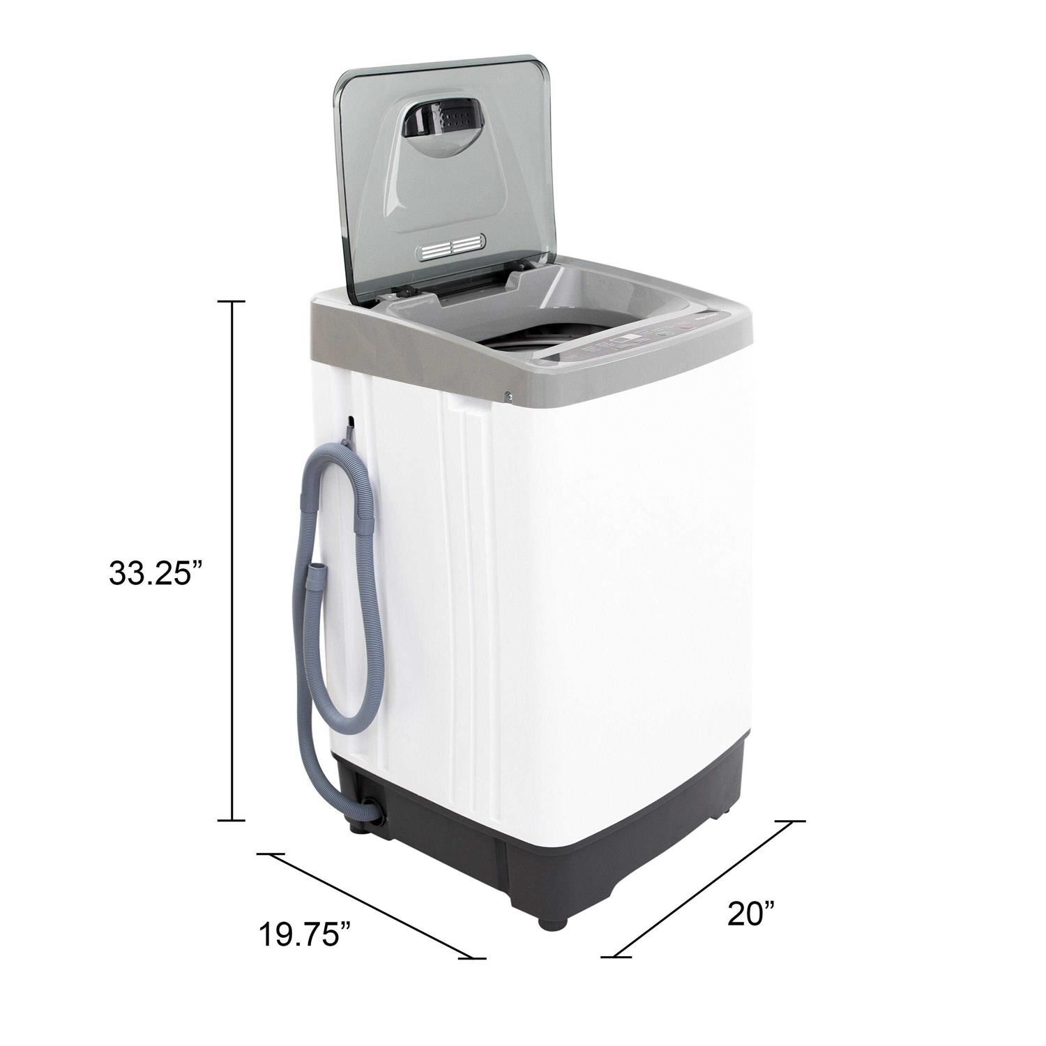 Solve small laundry space problems with the compact, 1.38 cubic feet, white, top load, portable, washer from Magic Clean. The perfect portable laundry washing machine for the dorm, studio apartment, basement, RV, tiny home, rental room, condo, vacation home, or anywhere you need a small washer. This compact washer includes a washer sink attachment that allows you to hook up to a standard sink faucet and uses a standard 120V electrical connection. It’s easy to store and use with its electronic control display, variety of cycles, load sizes, and temperature options to fit your laundry needs.