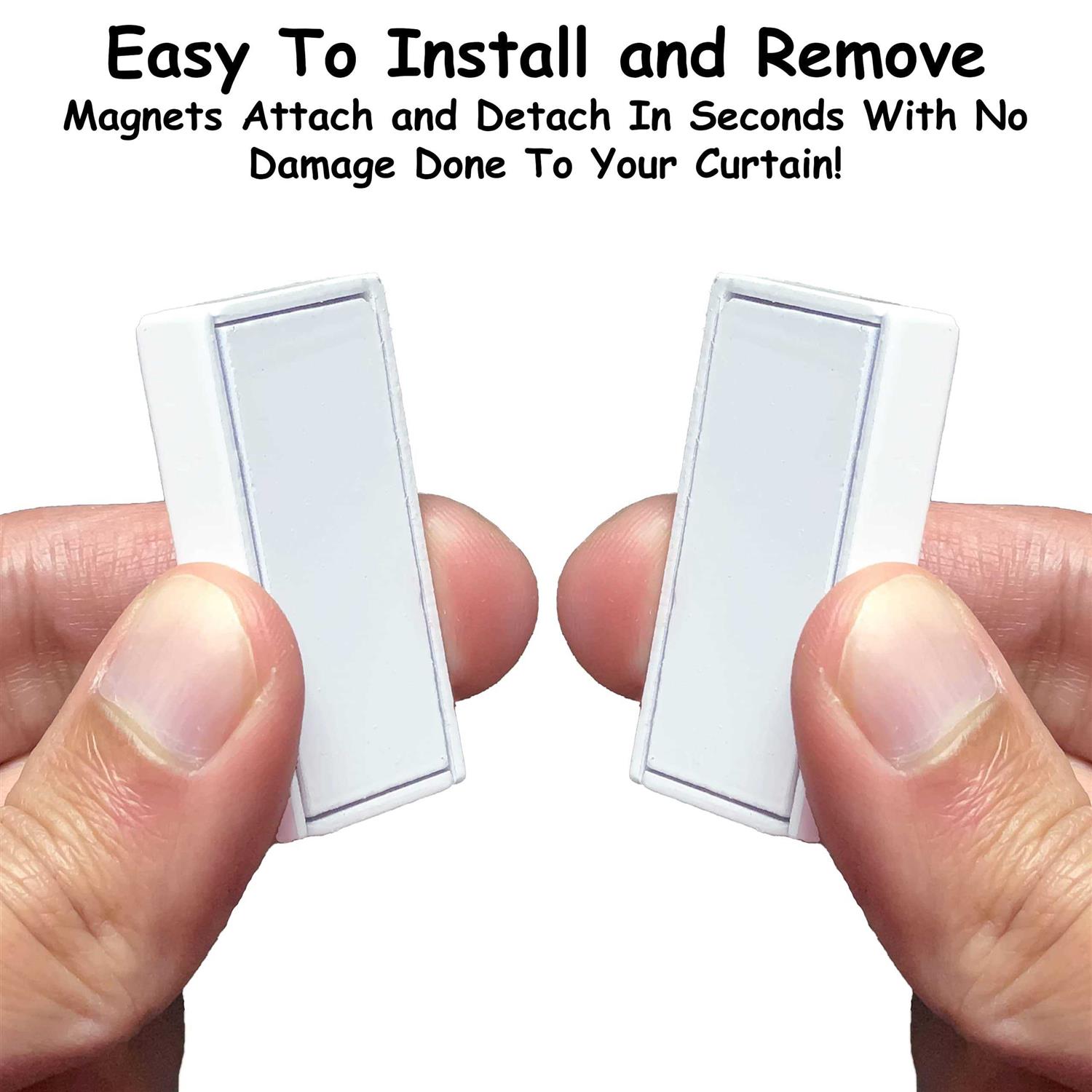 Shower Curtains, Hooks & Liners by Homie. Details:Description Peaceful Curtains – No more getting annoyed by blowing shower curtains or drapery. Enjoy relaxing showers and outdoor activities! Waterproof Coating – Each magnet is given a waterproof coating to ensure it works outside. There are 24 strong magnets with a total weight of 32 oz, giving you the option of exactly how much weight you need. Reusable Carrying Case – Great portable product. The premium case with foam keeps the magnets safe and lets you take them anywhere you are staying in a nicely designed package. Easy to Use – Simply take two magnets and they will attach automatically when you bring them together. No tools needed, and you can install everything in seconds. And similarly move them around and uninstall them with ease. Discrete Design – Great care was taken to ensure the packaging and magnet design was simple and sleek, meaning it will fit anywhere in your home as a high quality accessory.