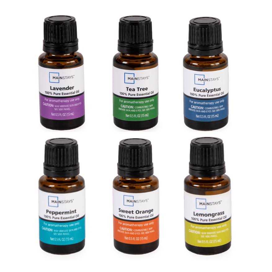 Mainstays Eucalyptus Lavender Lemongrass Sweet Orange Peppermint Tea Tree Essential Oil Gift Set – 15 ml