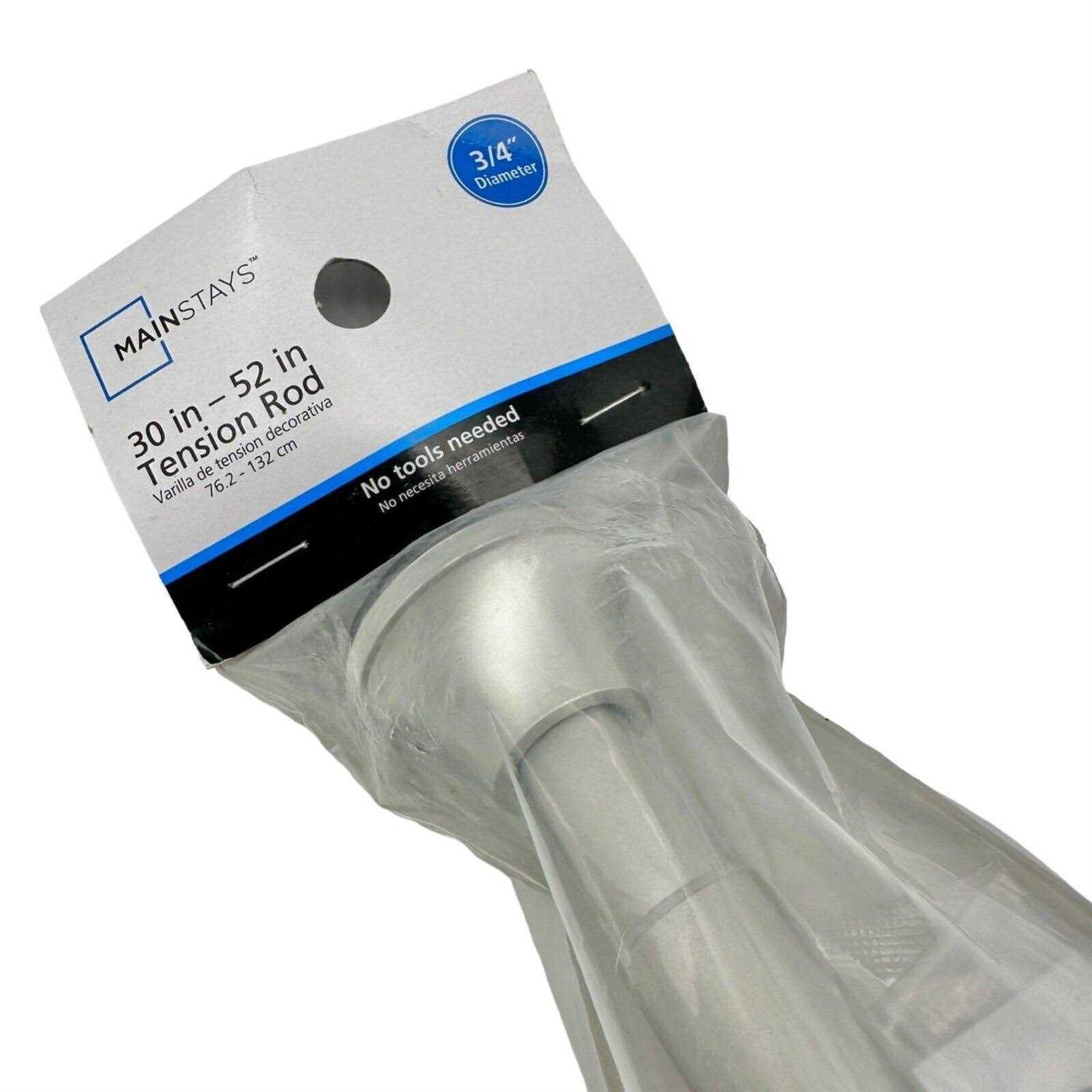 Our Mainstays 3/4 inch diameter Window Tension Rod is designed to fit inside window frames or doorways. Installation requires no tools and causes no damage to walls. Block light, reduce outside noise and end drafts when paired with your favorite window curtains. Instantly create privacy between room doorways or enclose open closet spaces. The non-slip tension will support various panel weights, from light sheers to thick blackout curtains. Rod width adjusts from 30 inch to 52 inch for the perfect fit. Elegant in design and finished in a lustrous silver, our tension will complement any room decor of your home.