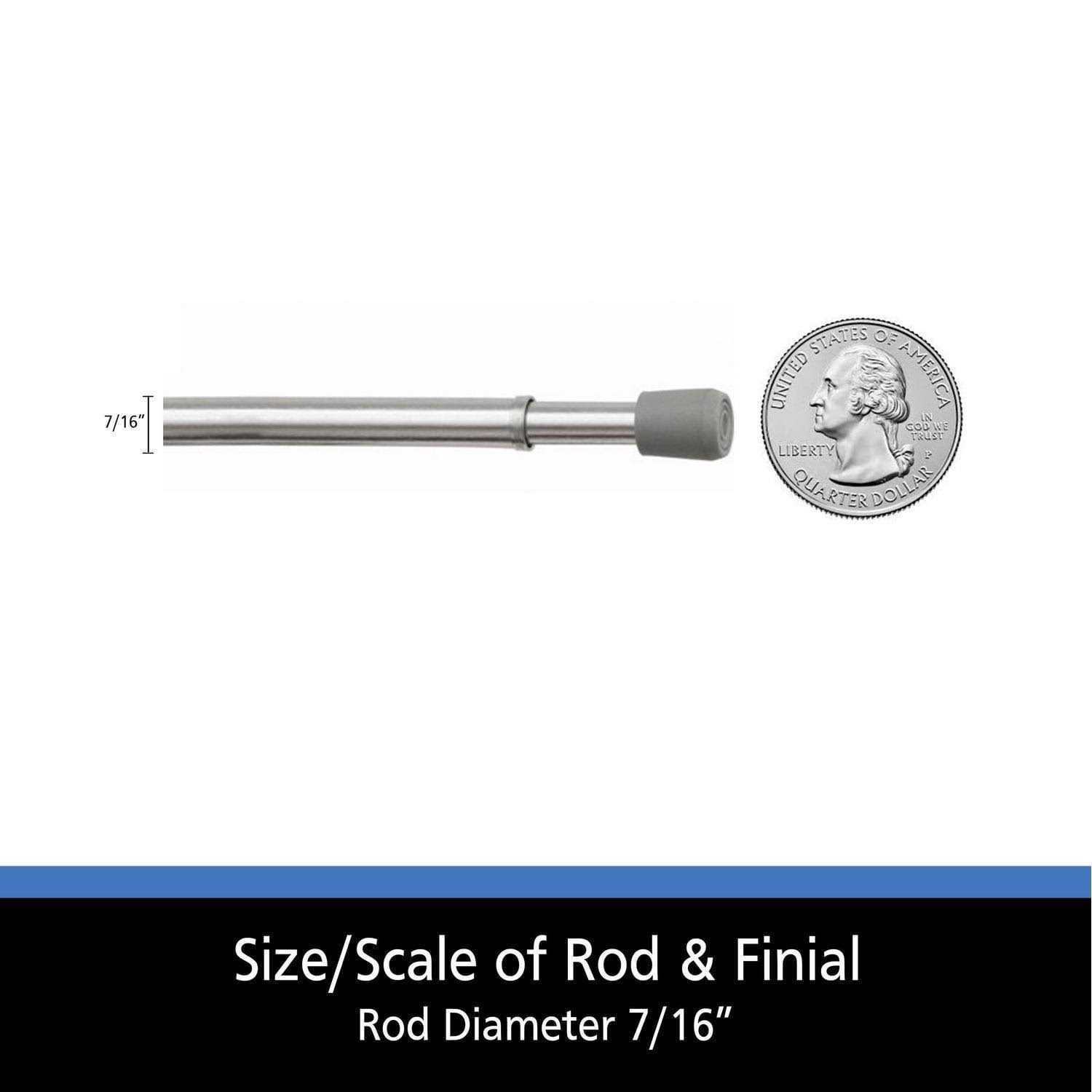- Slim, 7/16 in. (1.11 cm) diameter spring tension curtain rod is ideal for hanging lightweight curtains such as tier curtains or valances.