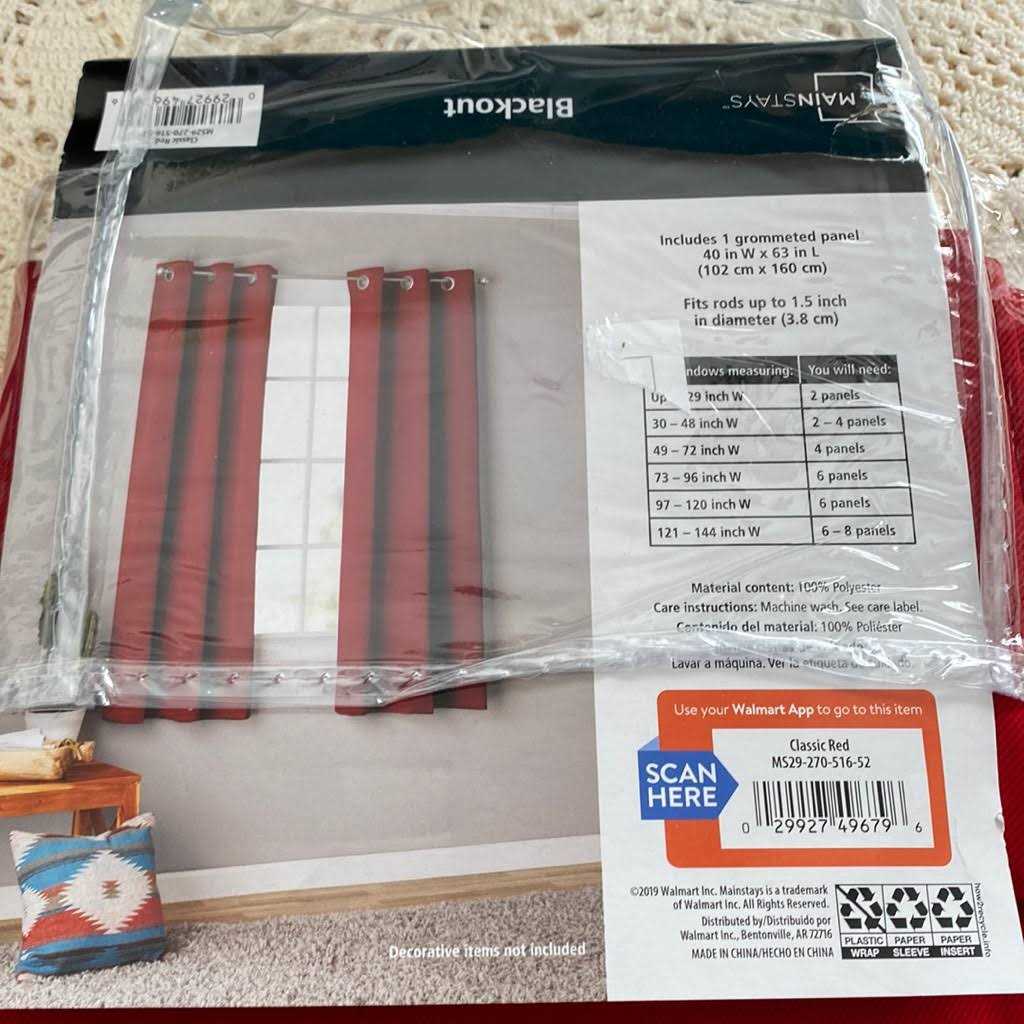 Mainstays Blackout Energy Efficient Grommet Single Curtain Panel, Size: 40 x 63, Red