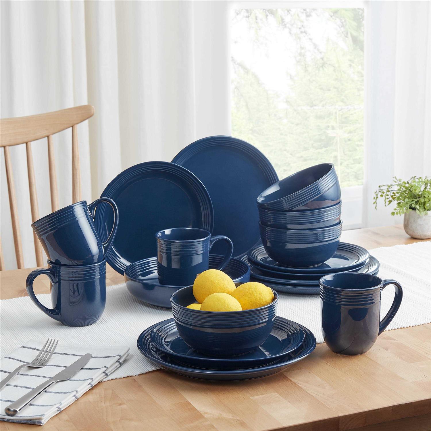 Mainstays Chiara 16-Piece Stoneware Navy Dinnerware Set