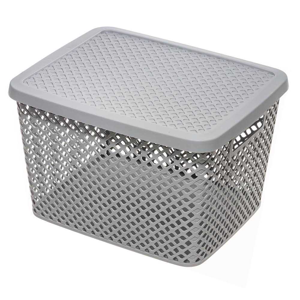 Mainstays Extra Large Decorative Plastic Storage Basket w/Lid, Gray