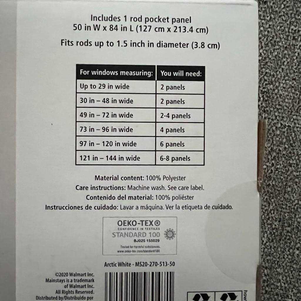 The Mainstays Linen Textured Curtain Panel in white is soft to the touch and adds a breezy relaxed look to any decor setting. This casual solid lets light gently filter through. Clean, simple one-pocket pole top design can be used with a standard or decorative curtain rod. Sold as individual panels measuring 50 inch width by 84 inch length. Measure carefully before selecting your desired size and quantity. Machine wash cold on gentle cycle. Use non-chlorine bleach when needed. Tumble dry on low heat.