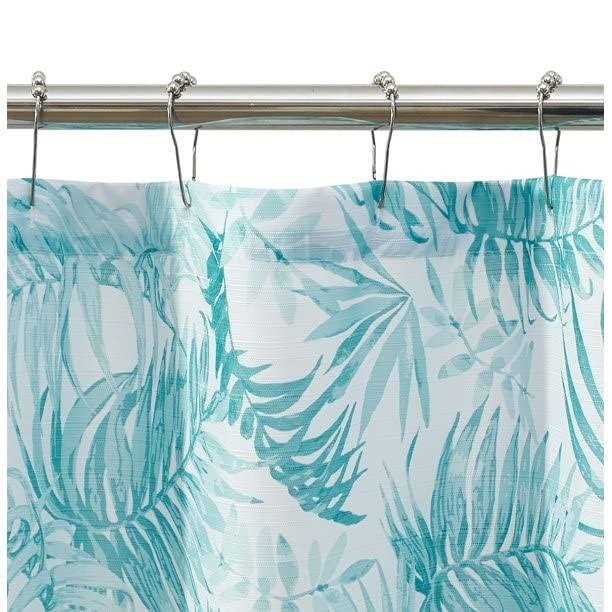 Mainstays Green Palm Leaves Printed Ribbed Polyester Textured Shower Curtain – 72 x 72 in