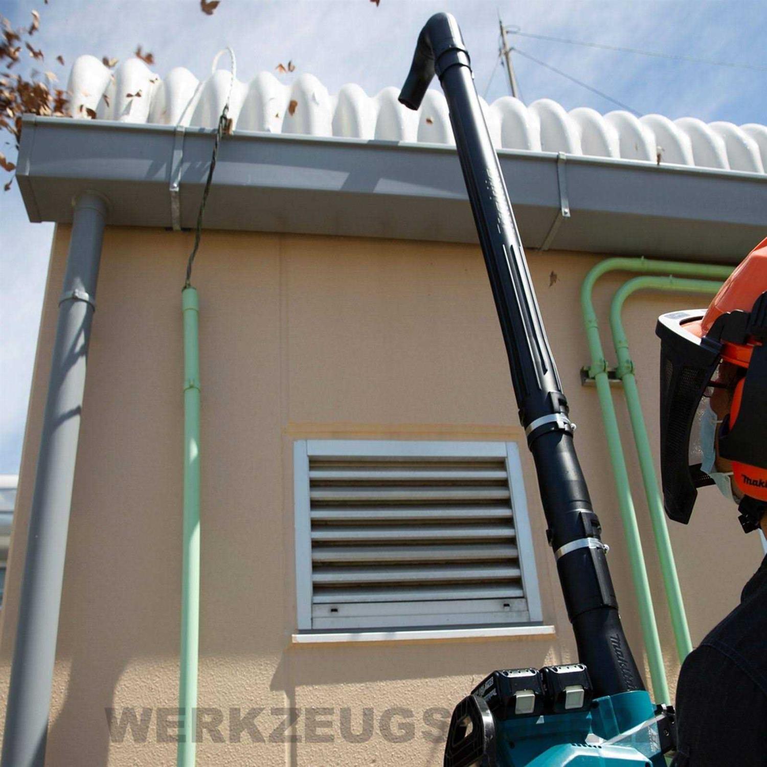 The Makita Blower Gutter Cleaning Attachment is a series of plastic tubes to extend handheld blowers up to 10-feet to clean gutters. It has a curved end nozzle designed to direct airflow into gutters to push out debris. The attachment installs quickly and easily for added user convenience. This is for use with LXT Blowers XBU02, XBU03, and XBU04 (sold separately).