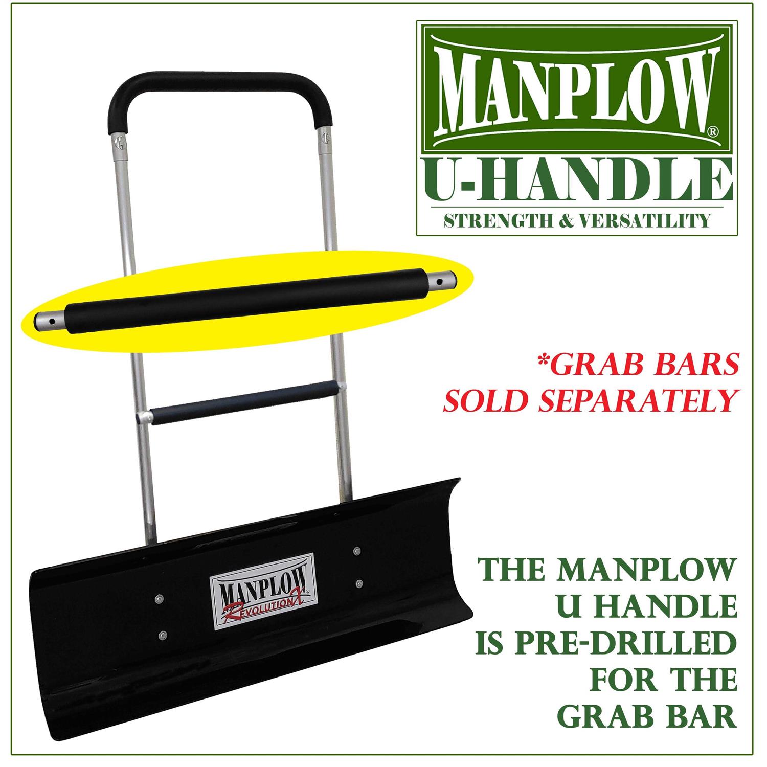 - All MANPLOW U Handles are pre-drilled for the MANPLOW Grab Bar, Throw Bar or Boost Bar. Bar’s Sold Separately.