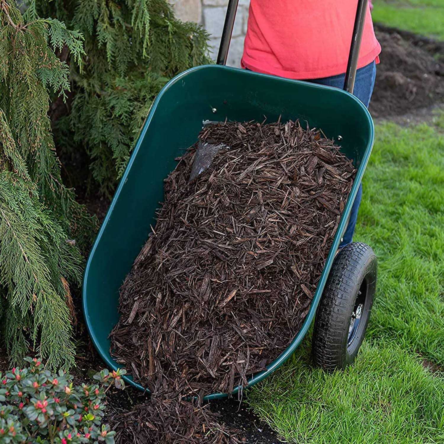 - Features two, air-filled wheels, making this yard cart easier to lift, balance and maneuver