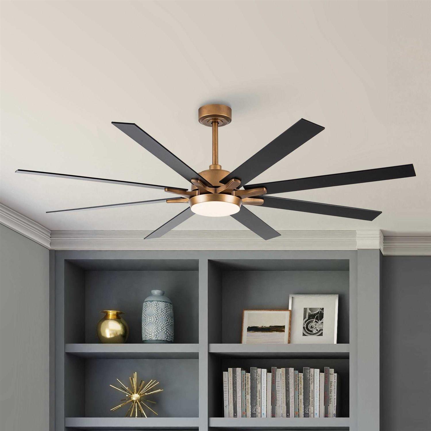 65-in Gold Reversible 8-Blades Large Windmill Ceiling Fan with Lights and Remote – 65 in. D x 65 in. W x 13.5 in. H