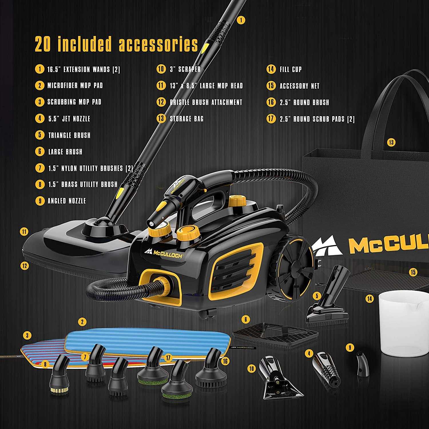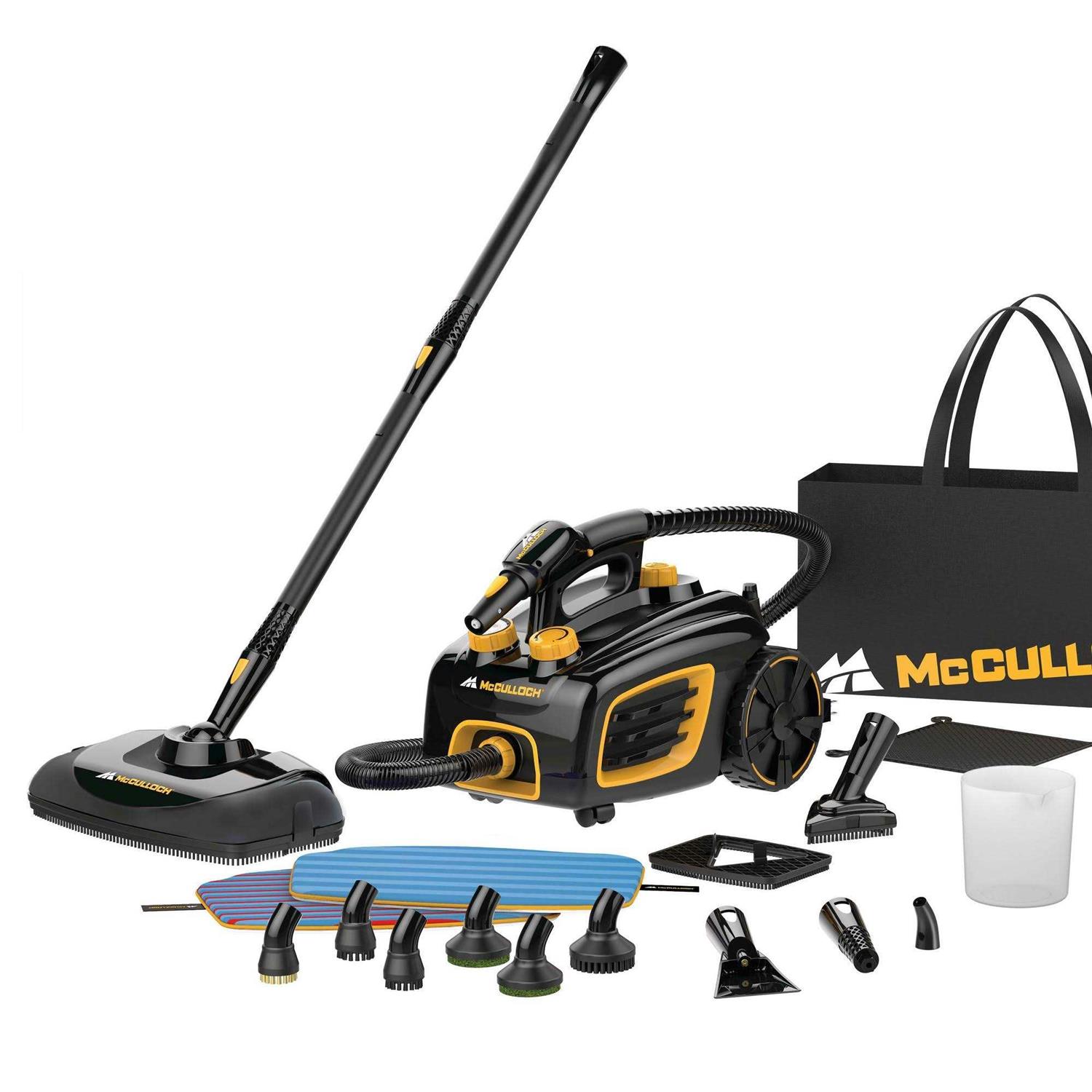 Join the cleanin’ green team with the power of clean steam and the McCulloch MC1375 Canister Steam Cleaner System. This steam cleaner naturally cleans and sanitizes a wide variety of floors and surfaces with super heated steam. With 58 PSI of pressure, it will blast away grease and grime without the use of harsh chemicals. Heat this bad boy up in just 10 minutes and leverage 90 minutes of continuous steam cleaning. Best of all, this beast of a steamer features 20 accessories for all kinds of cleaning needs, so choose the McCulloch MC1375 Canister Steam Cleaner System today. Color: Black. Gender: unisex.