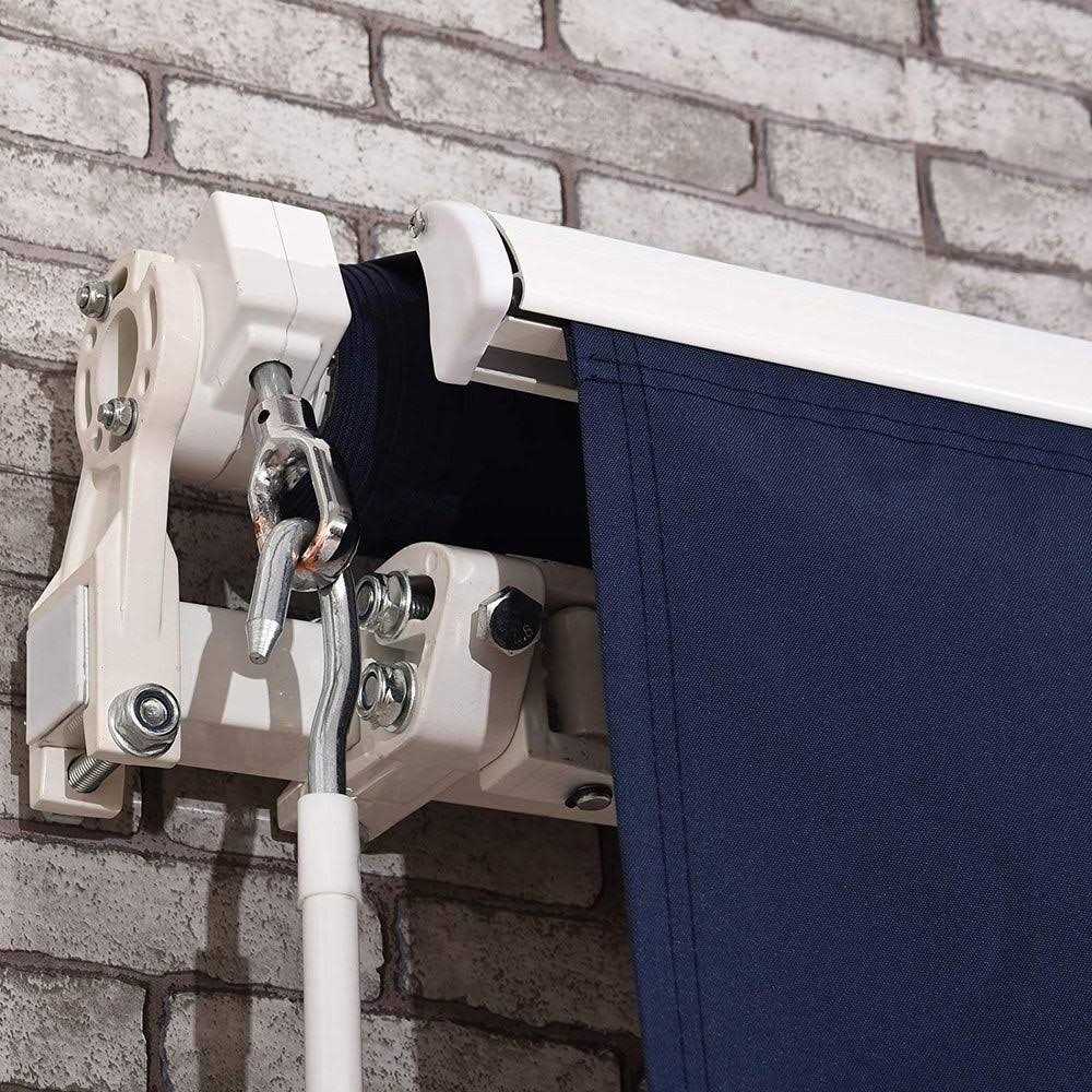 Mcombo 12×10 Feet Manual Retractable Patio Door Window Awning Sunshade Shelter Outdoor Canopy (Dark Blue)