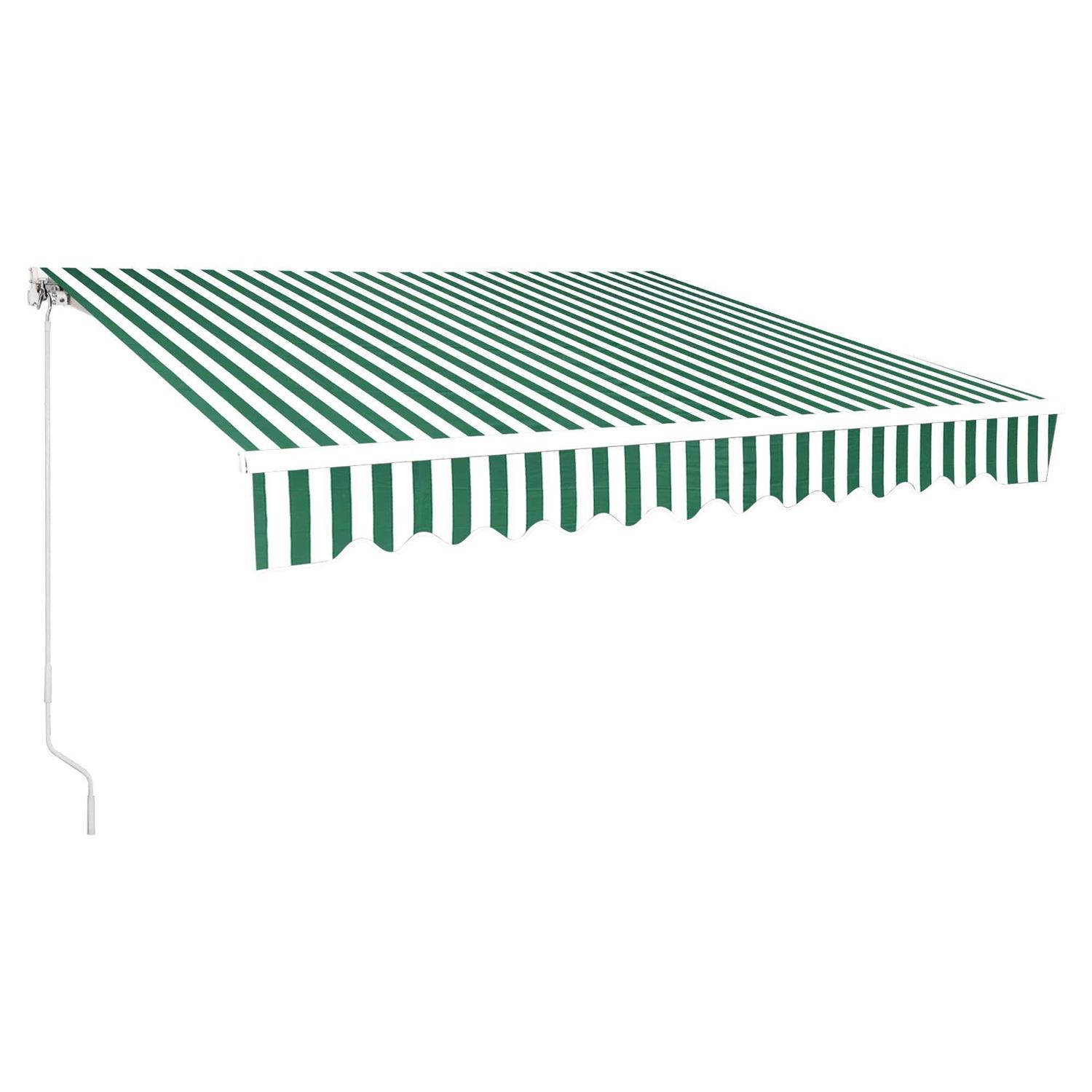 Mcombo 12×10 Feet Manual Retractable Patio Door Window Awning Sunshade Shelter Outdoor Canopy (Dark Green with White Stripes)