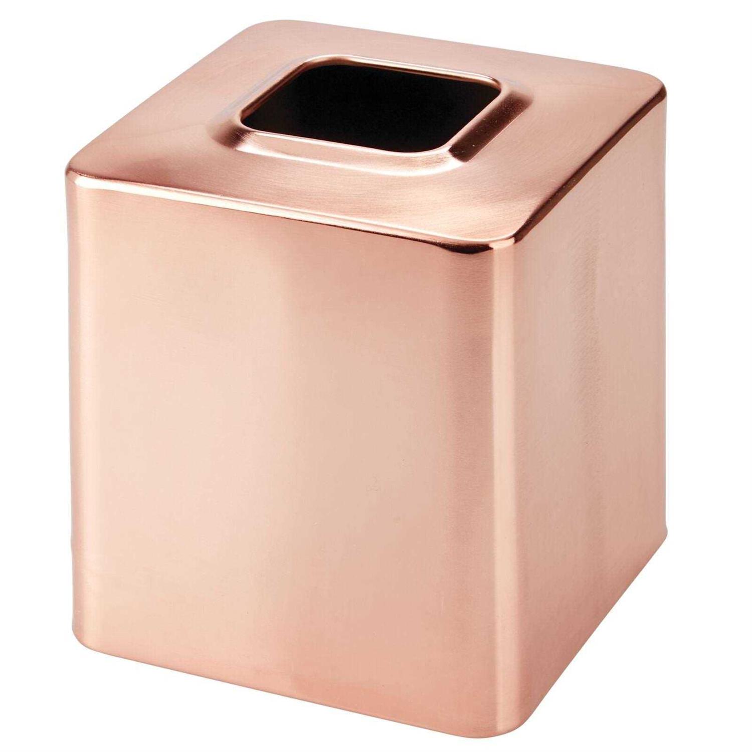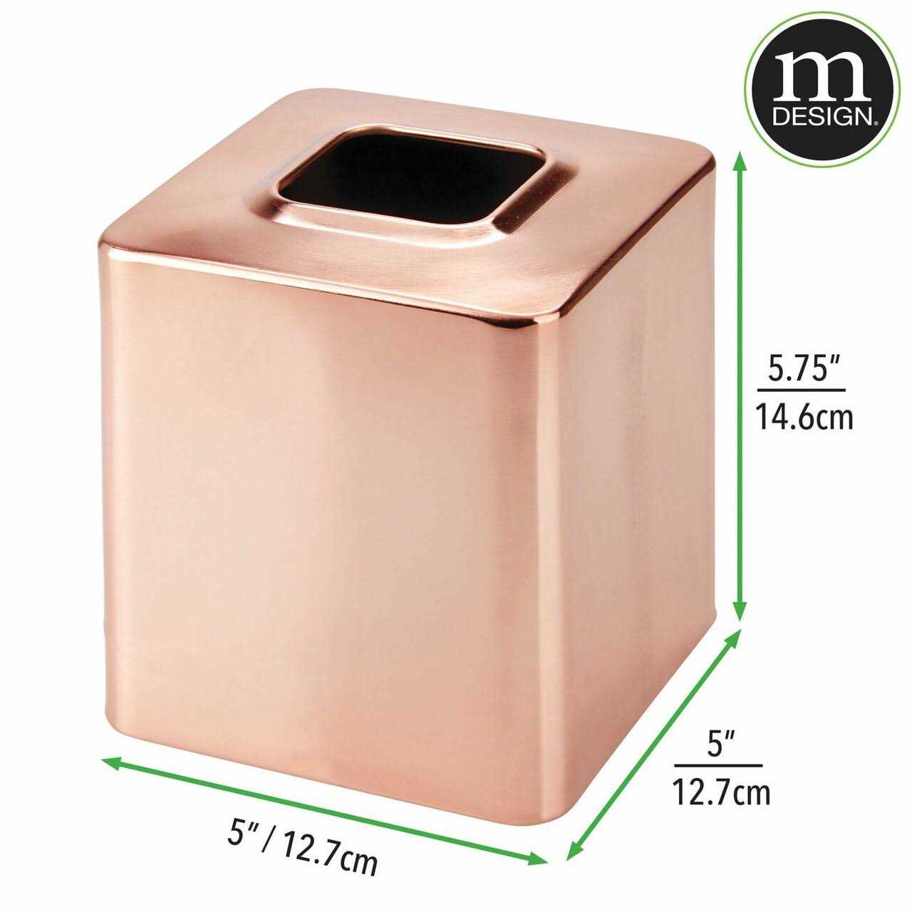 Dress up boring, square tissue boxes, while adding a decorative touch to your bathroom vanity with this Tissue Box Cover from mDesign. This beautiful, modern cover fits over standard-sized tissue boxes and the open bottom makes refilling easy. The opening in the top is large enough to grab tissues as needed while still hiding colored cardboard tissue boxes. The minimalistic design adds a decorative touch to existing decor in any room of your home. mDesign – Solutions for Home. Solutions for Life.