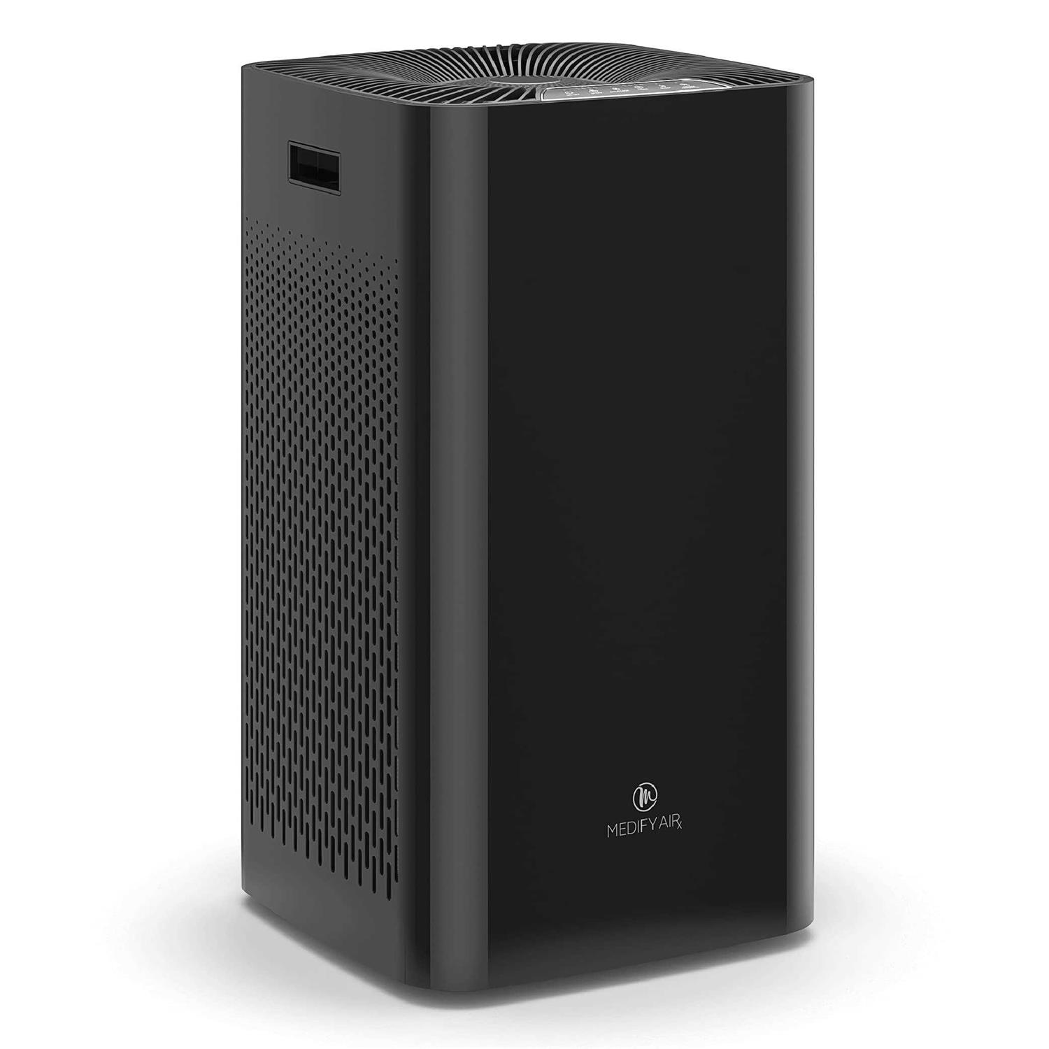 Medify Air MA-112 Air Purifier with H13 HEPA filter – a higher grade of HEPA. with an AHAM CADR rating of 950. The highest CADR and best performance of any home air purifier under $1500. The MA-112 will easily clean the air in a room up to 3,700 square feet every hour. True H13 HEPA 3 Stage Filtration on both sides of the unit. Dual air intake for twice the filtration.2,500 square feet room cover with 2 air exchanges per hour. Passes all the air in a 1,250 sq ft room 4x each hour. More with smaller rooms.Touch screen panel, 4 fan speeds, sleep mode and child lock.