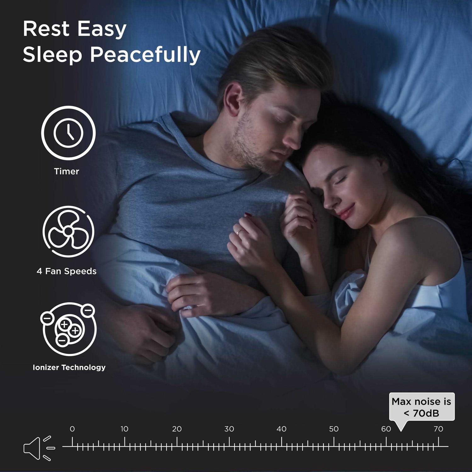 • Touch screen panel, 4 fan speeds, ionizer function can be turned on/off, sleep mode, auto on/off, and child lock.