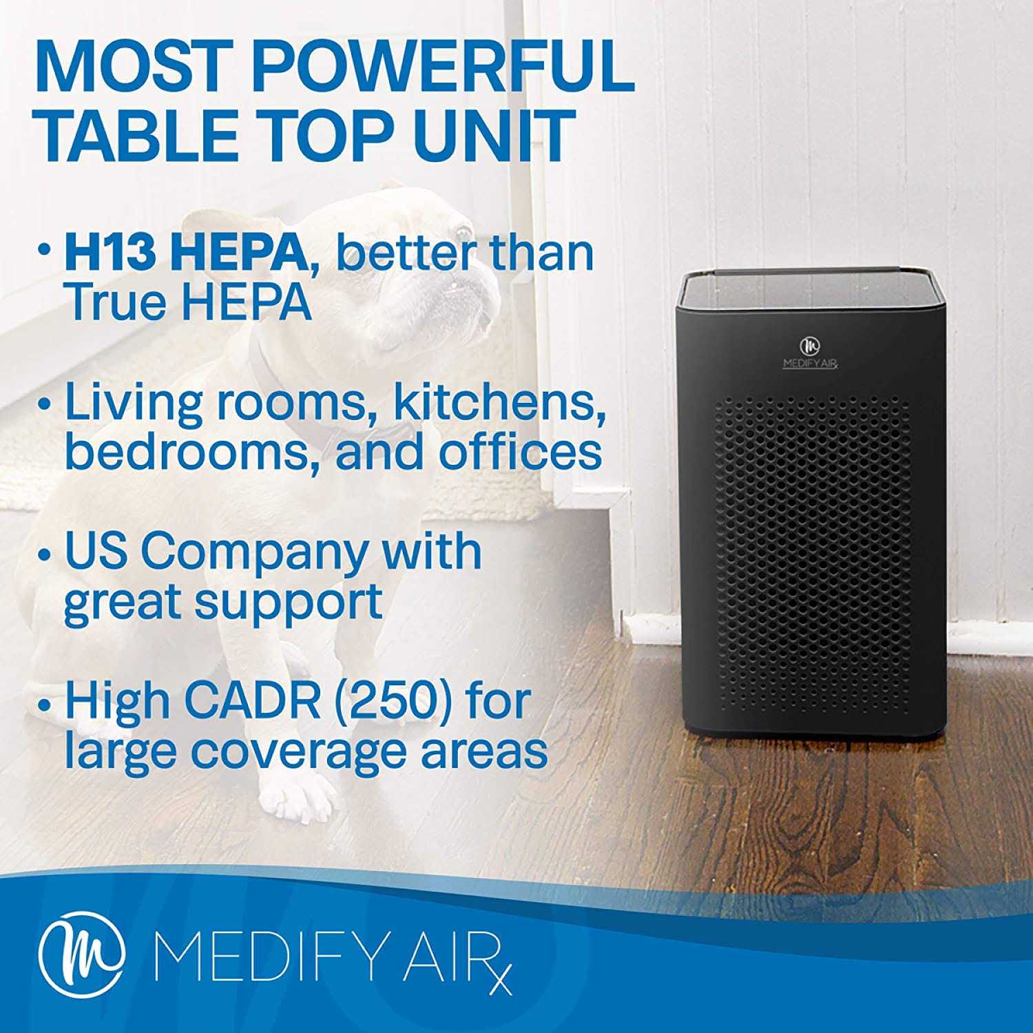 - True HEPA H13 or better removes 99.9% of particles down to 0.1 microns.