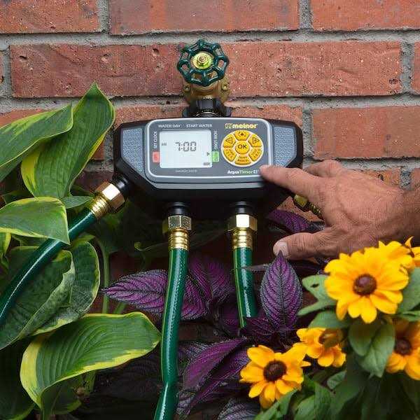 Nourish several areas of your yard with this four-zone electric water timer. Featuring four high-flow valves to water four areas you can easily select four separate start times on each valve. The timer’s rain delay function helps you avoid wasting water by pausing the water for up to seven days. The angled-valve design makes it easy to attach this water timer to multiple hoses with no harm to your knuckles. Each zone works like a separate timer so the tomatoes and squash can be watered every morning while the lawn sprinkler comes on every few days.