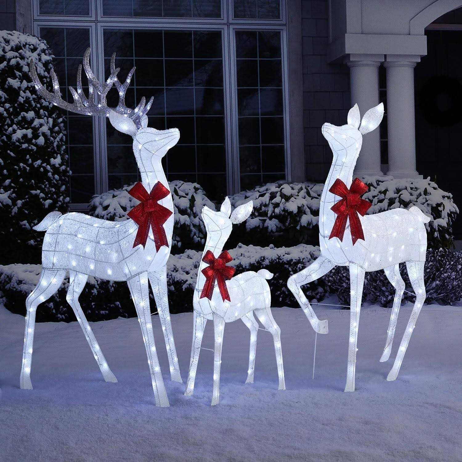 Member’s Mark 3 Piece Pre-Lit Iced Twinkling Deer Family – White