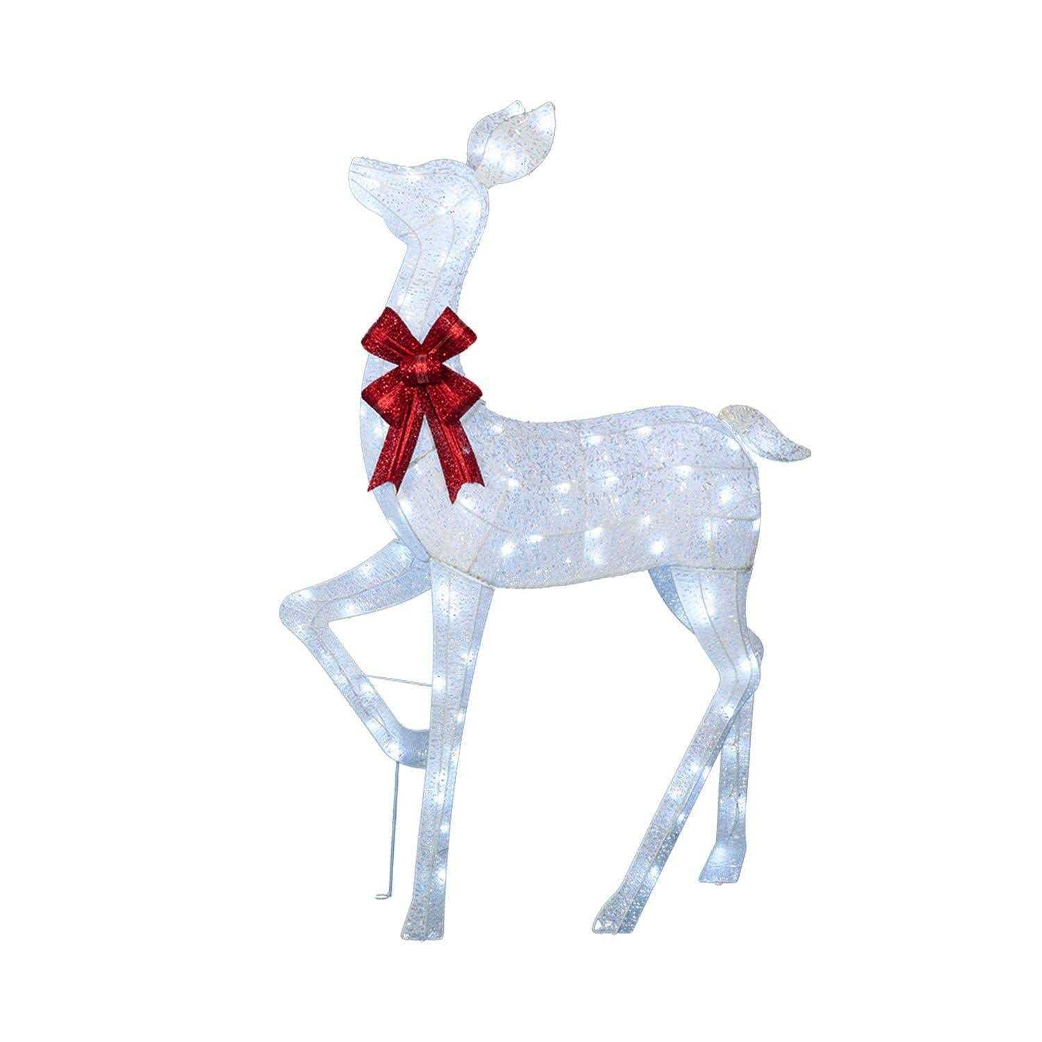 These deer will stand proud in your yard to welcome you and your guests to your house and share your holiday spirit with everyone in the neighborhood. Available exclusively at Sam’s Club, this deer family includes 360 cool white LED lights with a random twinkling effect for added brightness and sparkle on your lawn at night. Recommended for both indoor and outdoor use, the deer are easy to assemble, and each set includes 12 yard stakes and one 5-foot (1.52 m) lead cord. The deer are lifelike in size and create a dramatic presence with their glittering material and elegantly styled removable bows around their necks. With the long life of LED bulbs the deer family will continue to shine bright throughout many holiday seasons. LED bulbs have a long bulb life of 25,000 hours on average. The long life is environmentally friendly as it equates to fewer resources used over time. An additional sustainability feature is that the packaging for the set is recyclable.