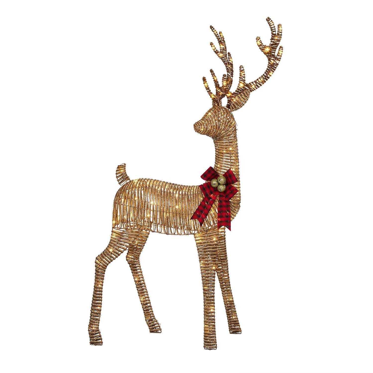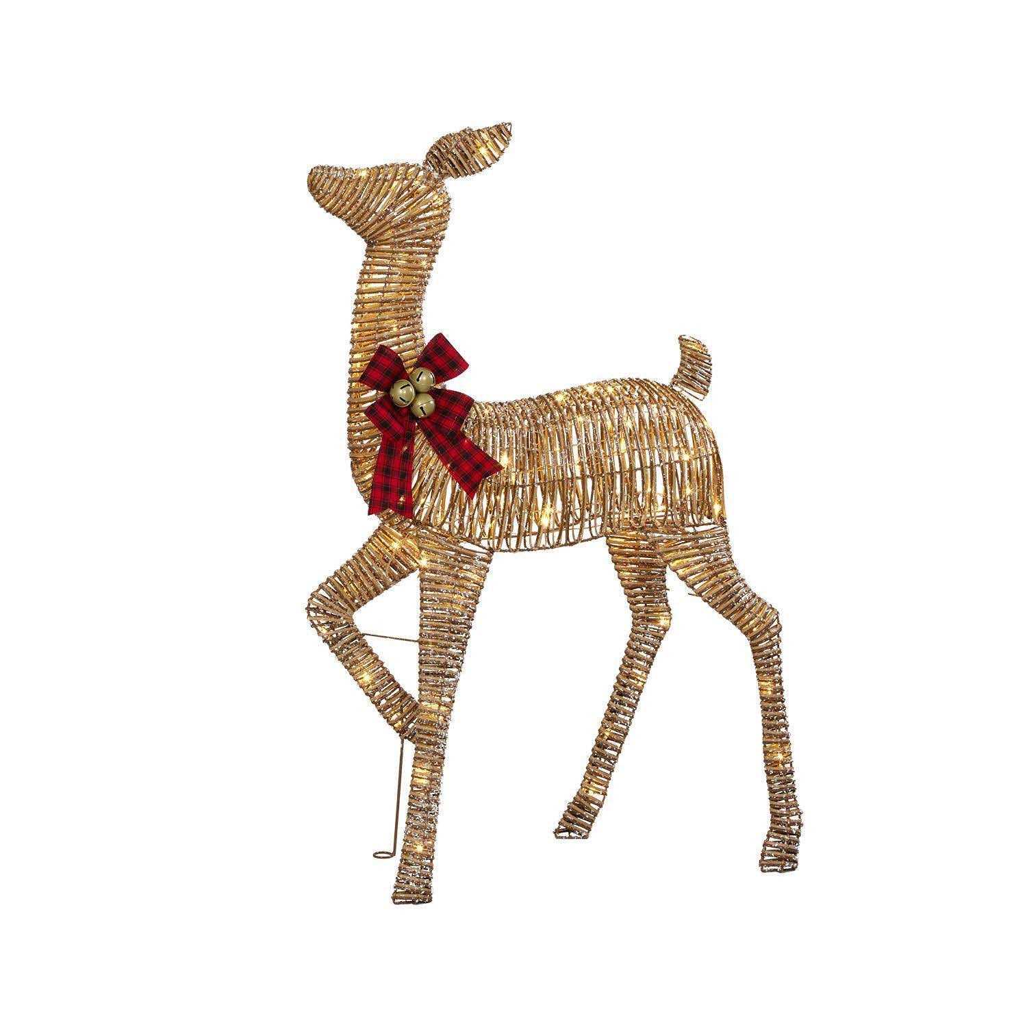 These deer will stand proud in your yard to welcome you and your guests and share your holiday spirit with everyone in the neighborhood. Available exclusively at Sam’s Club, this deer family features 330 warm white LED lights with a random twinkling effect for added brightness and sparkle for your lawn at night. Recommended for both indoor and outdoor use, the deer are easy to assemble, and each set includes 12 yard stakes and one 5-foot (1.52 m) lead cord. The deer are lifelike in size and create a dramatic presence with their glittering material and elegantly styled removable bows around their necks. With the long life of the LED bulbs the deer family will continue to shine bright throughout many holiday seasons. These LED bulbs have a long bulb life of 25,000 hours on average. The long life is environmentally friendly as it equates to fewer resources used over time. An additional sustainability feature is that the packaging for the set is recyclable.