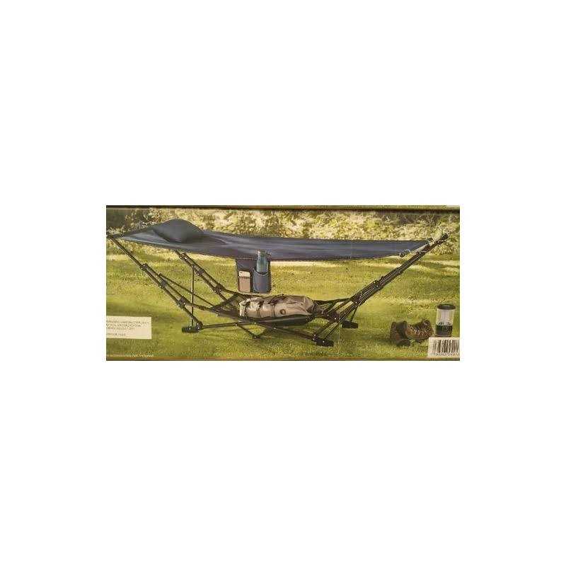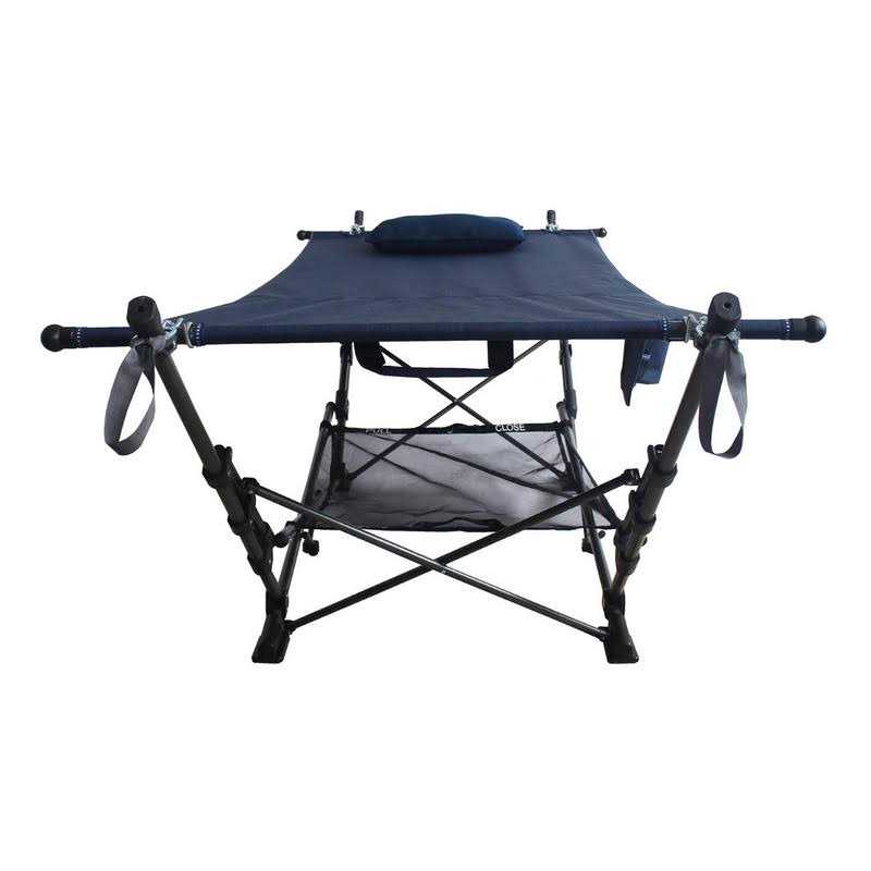Easy setup, portability and convenient carry handles let you relax in Member’s Mark Portable Folding Hammock almost anywhere. The no-tools-required assembly will have ready to use in less than one minute. Oversized for comfort, the 600D heathered polyester fabric wraps around a durable powder-coated steel frame with a weight capacity of 250 pounds. Integrated carry handles eliminate the need for a carry bag. An attached side pouch and lower sling provide the perfect place to place a drink, store phones, a book, a backpack, and other miscellaneous items. The detached air mesh pillow allows for maximum comfort–no matter which direction you choose to lay. Great for backyards, camp sites, parks and more, Member’s Mark Portable Folding Hammock is the perfect choice for an afternoon outdoors. Available in Blue and Gray.
