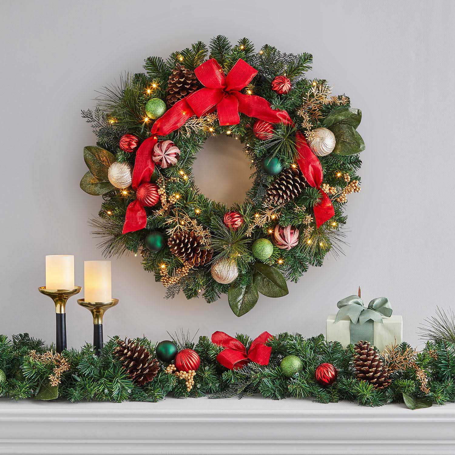 Member’s Mark Pre-Lit 32′ Decorated Wreath-Red/Gold