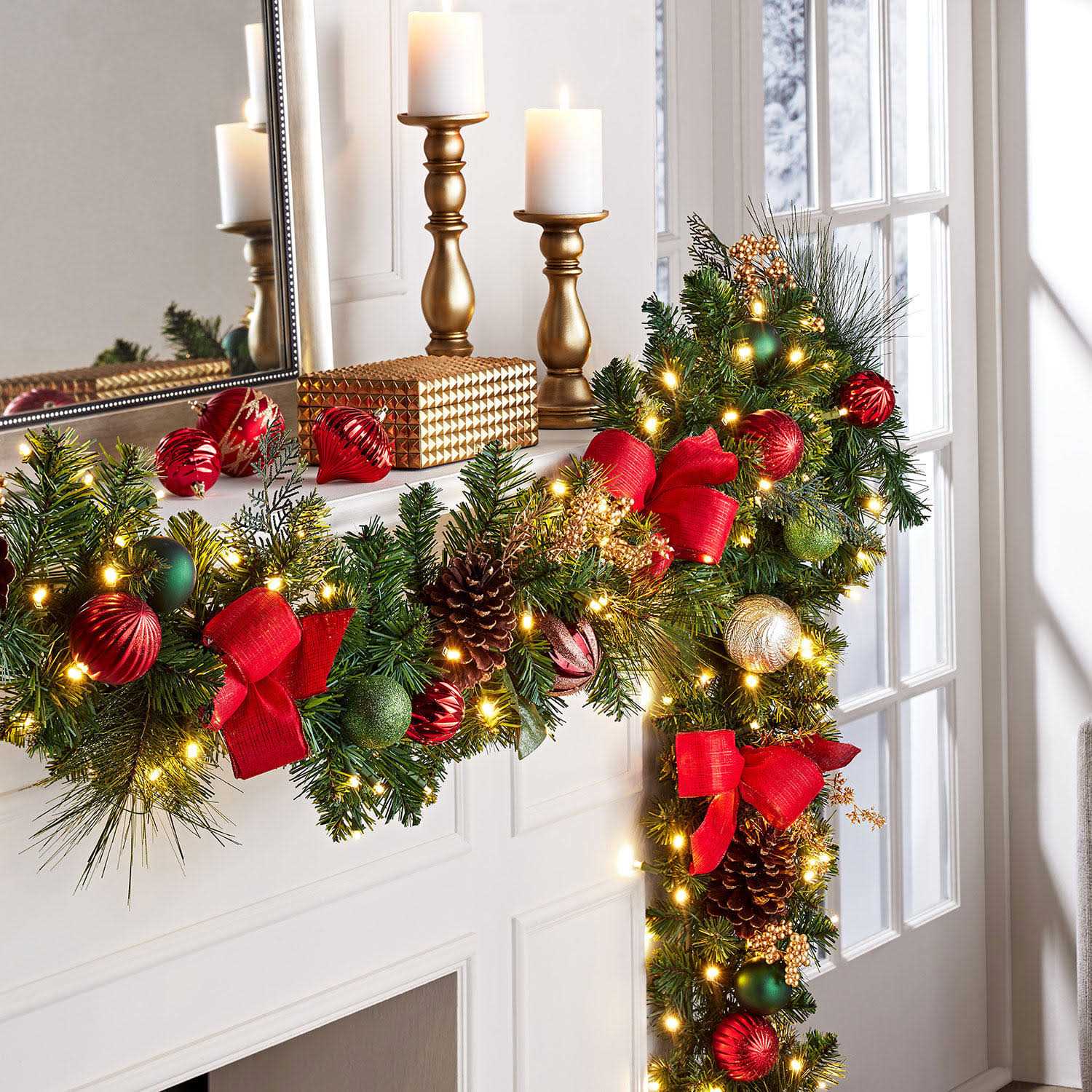 Member’s Mark Pre-Lit 9′ Decorated Garland-Red/Gold