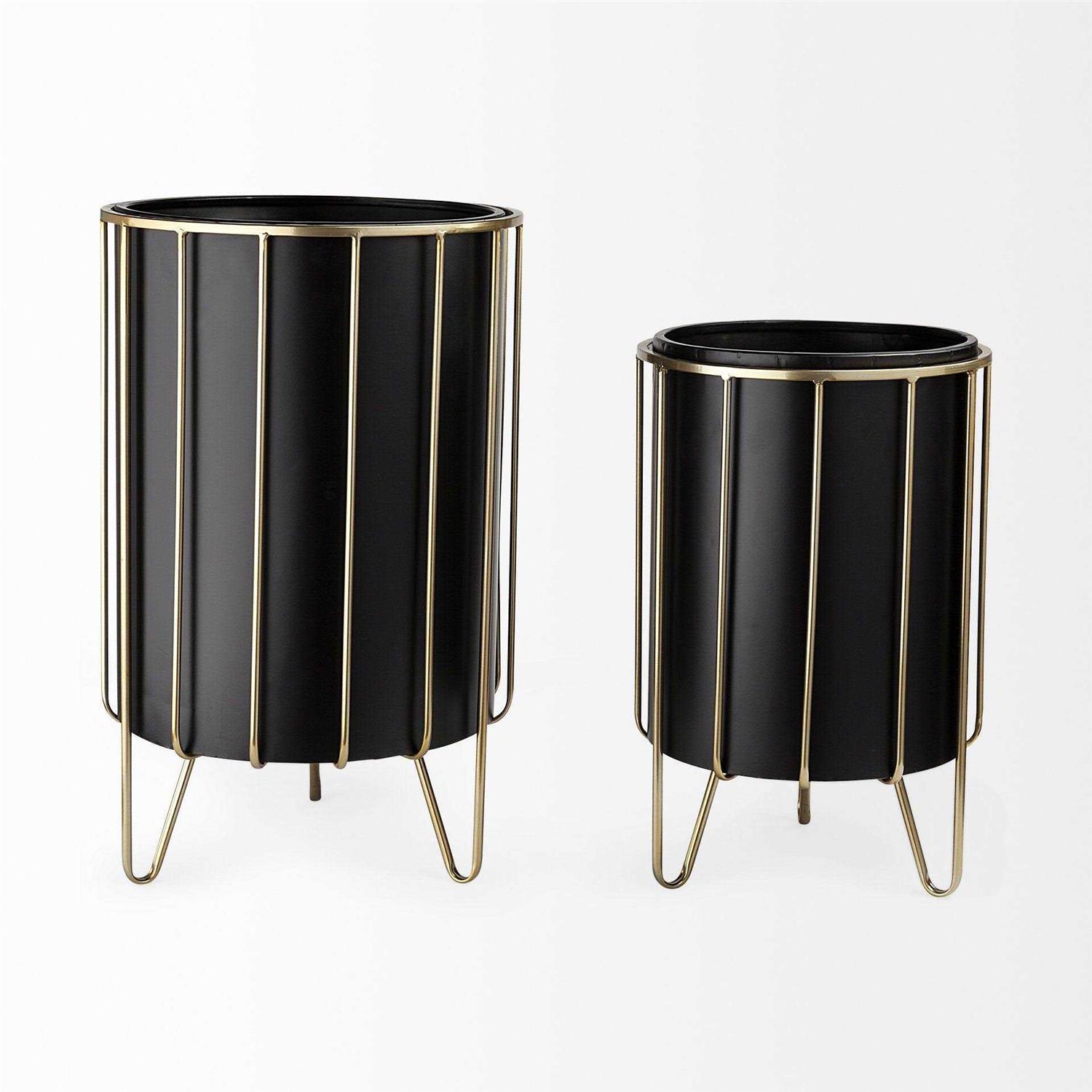 Mercana Pianta 12.8 x 20.9 Set of Two Black Metal Insert Brass Frame Plant Stands